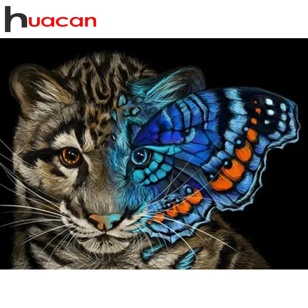 Алмазная живопись Huacan 5D, новая леопардовая бабочка, бриллиантовая вышивка, креативные хобби, украшение для спальни