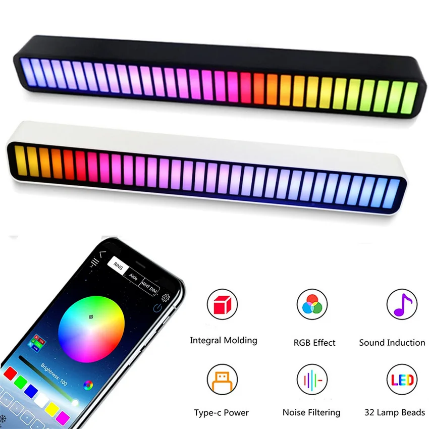 Характеристика: 1. Дизайн: в этом музыкальном активированном освещении используется акриловое интегральное формование, красочные динамические эффекты RGB, индукция звукового поля, фильтрация шума окружающей среды, 32 /40 независимых лампочек. Встроенный модуль Bluetooth, автоматическое ощущение музыки 2. Функция: музыкальный ритм лампы по умолчанию 7 статических эффектов светильник, 5 динамических режимов, 10 режимов пикап. Вы также можете настроить 210 красочных режимов через приложение. Вы можете выбрать цвет в соответствии с вашими предпочтениями. Даже регулировка яркости и скорости переключения на светильник. 3. Использование: вы можете выбрать статический или динамический режим в соответствии с кнопками самой светодиодной ленты. Вы также можете настроить и настроить различные режимы через приложение. В соответствии с инструкцией, приведенной в инструкции, установите светильник в соответствии с вашими предпочтениями 4. Автомобильный звуковой ритм-светильник с активированным звуком-лампа уровня музыки принимает алюминиевый сплав после литья корпуса, с диверсификацией автомобиля, этот вид лампа с голосовым управлением может добавить различные украшения для нашего автомобиля, Ориентируйтесь на ваши предпочтения. С интеллектуальным алгоритмом шумоподавления, он может быть использован в шумной среде. Технические характеристики Напряжение: 5 В/1 а постоянного тока Зарядка: USB tape_c Материал: АБС + электронные компоненты Светильник бусины: 32 / 40 светодиодов на светильник бар Цвет: Дневной свет белый + RGB Частотная характеристика: 100-16 кГц Посылка в комплекте Светильник-1 шт. 1 х USB кабель 1 x Руководство пользователя