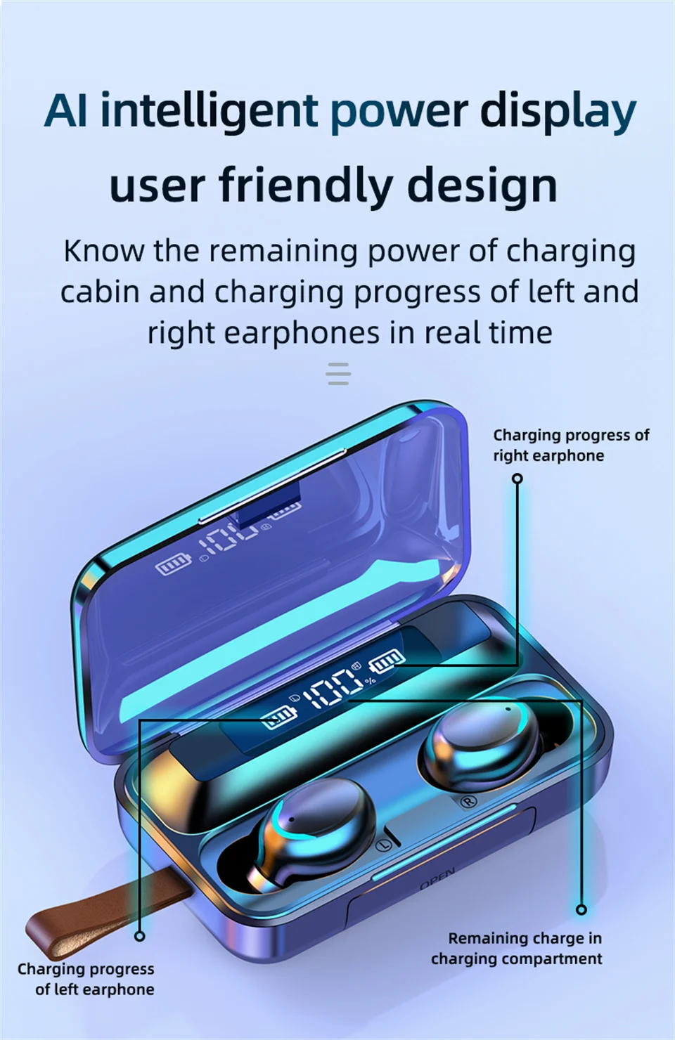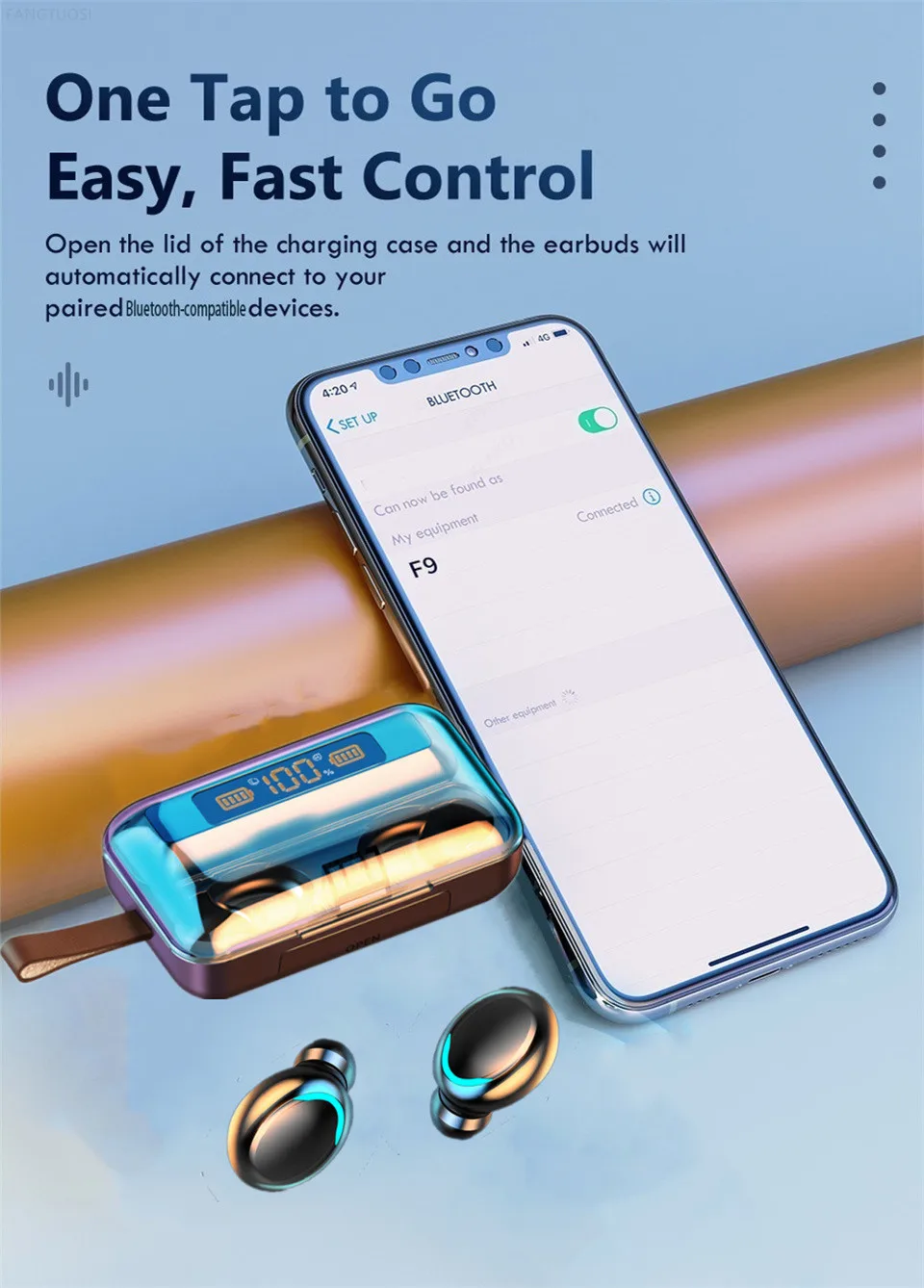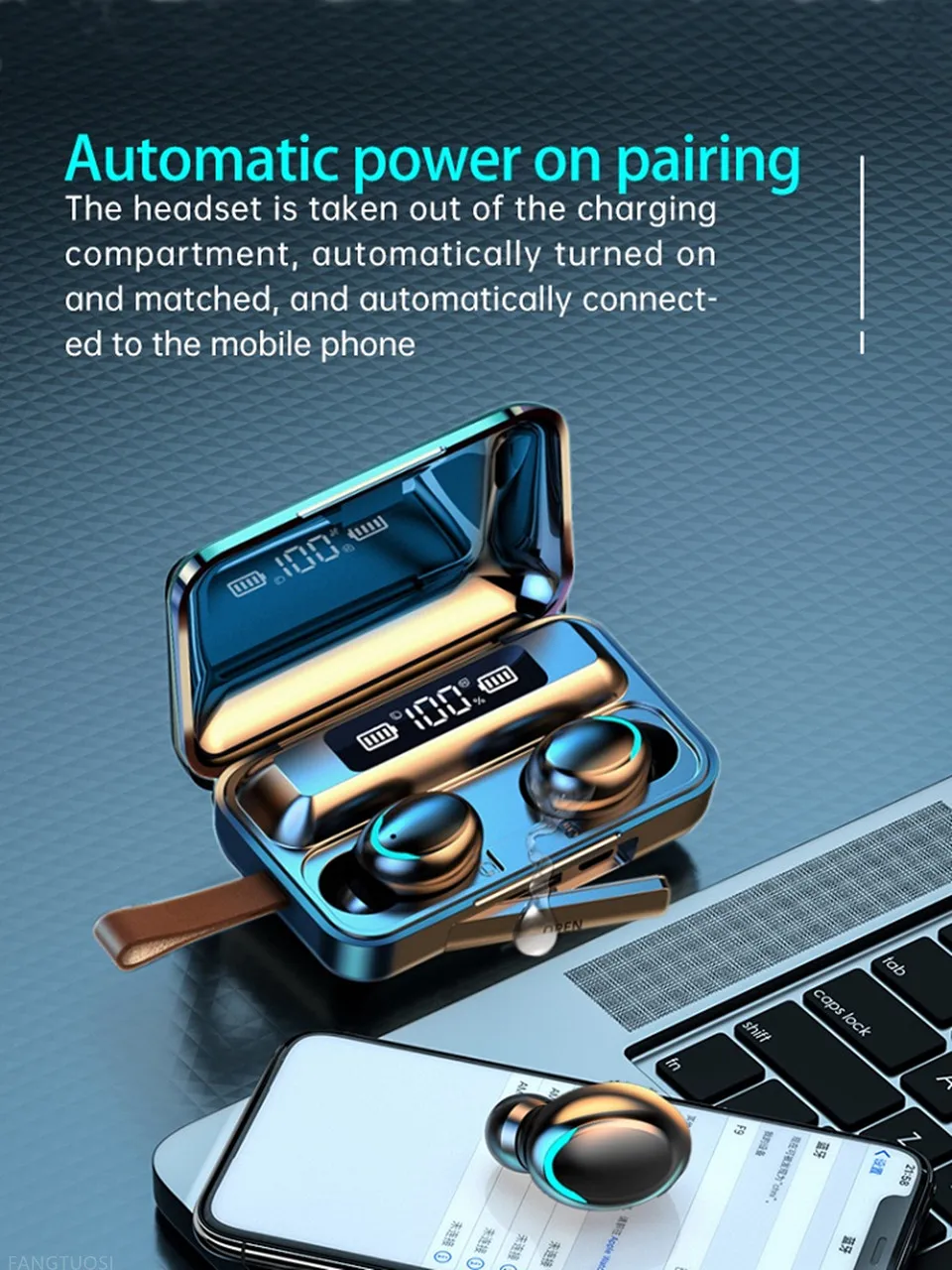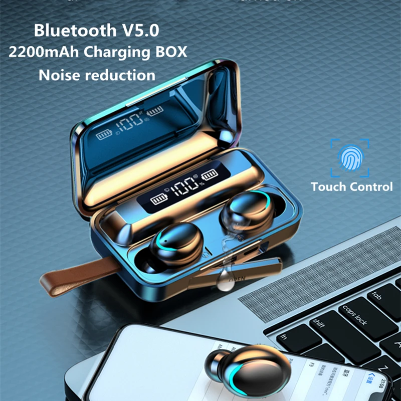 Bluetooth-наушники F9-V5.0 TWS с сенсорным управлением и защитой от отпечатков пальцев