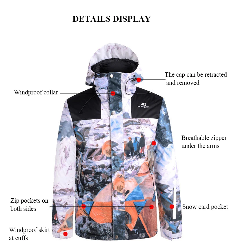 1. Поверхность зимних сноубординга с прочным водоотталкивающим покрытием может эффективно блокировать жидкости и пятна, всегда держать вас в сухости и чистоте независимо от условий.