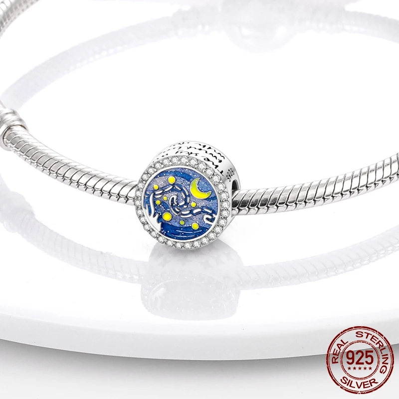 Лидер продаж 2022 серебро 925 пробы Луна солнце звезда Галактика Висячие шармы бусины подходят для женщин оригинальный браслет Pandora DIY ювелирные изделия