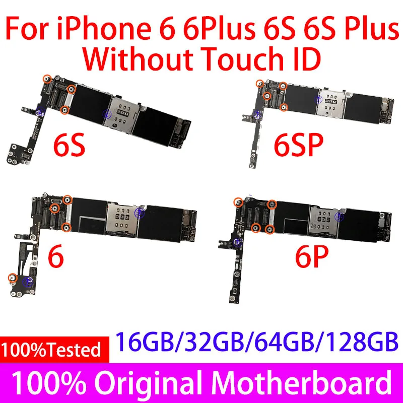 100% оригинальная материнская плата для iPhone 6 6 p для iPhone 6 6 Plus 6S 6S Plus материнская плата без Touch ID Заводская разблокированная