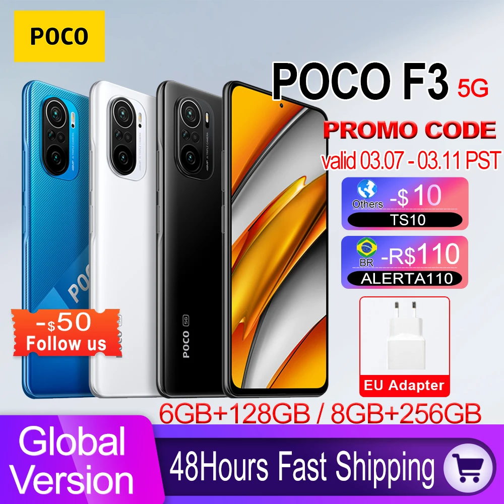 Смартфон глобальная версия POCO F3, Восьмиядерный процессор Snapdragon 870, 6 ГБ, 128 ГБ256 ГБ, 6,67 дюйма, 120 Гц, дисплей AMOLED E4, быстрая зарядка, 33w
