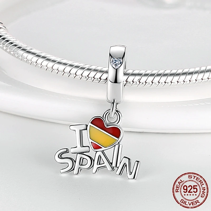 925 серебряные испанские бусины I LOVE Spain, подвеска-Шарм для оригинального браслета, ожерелья сделай сам, изготовление ювелирных изделий