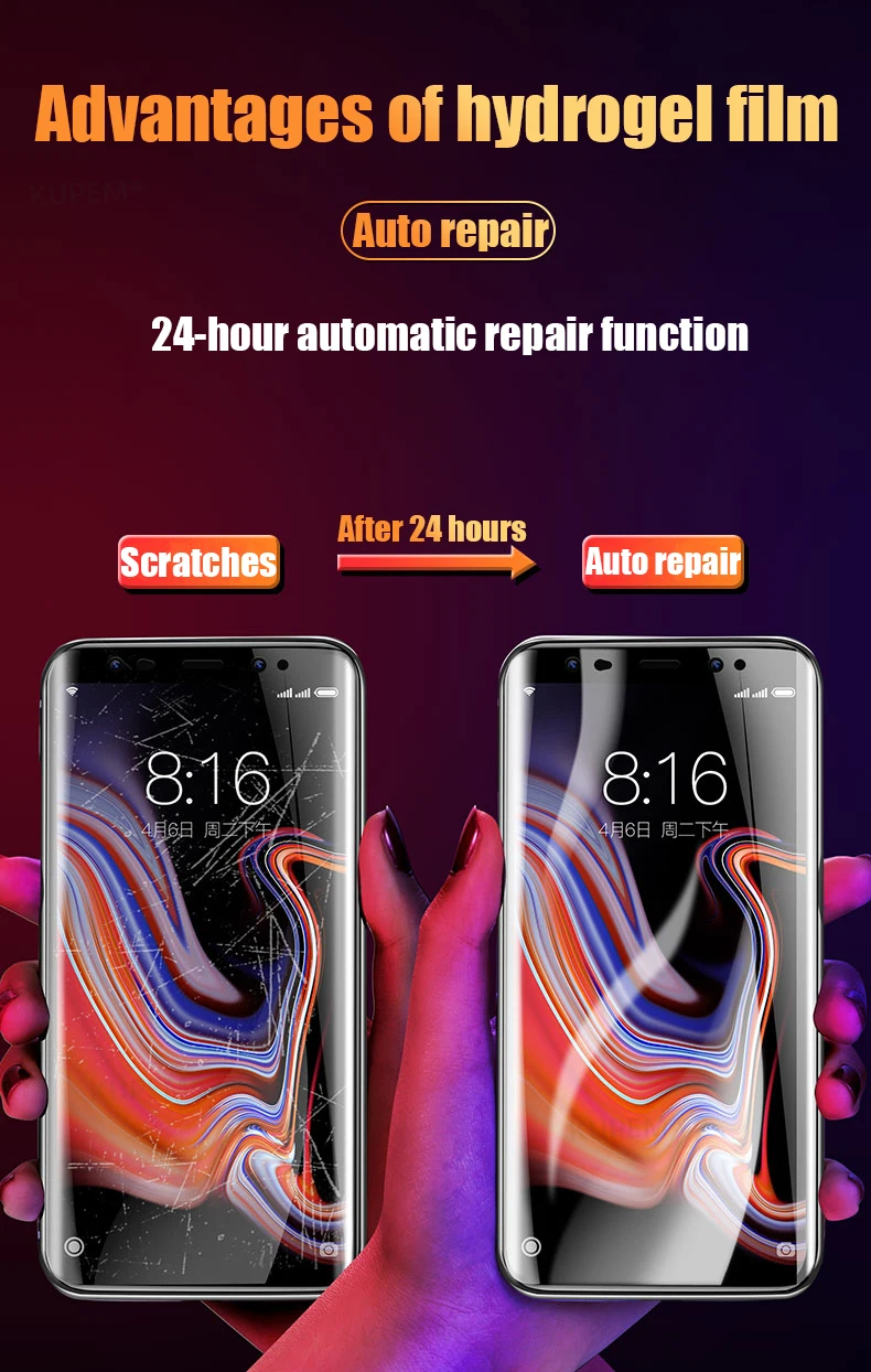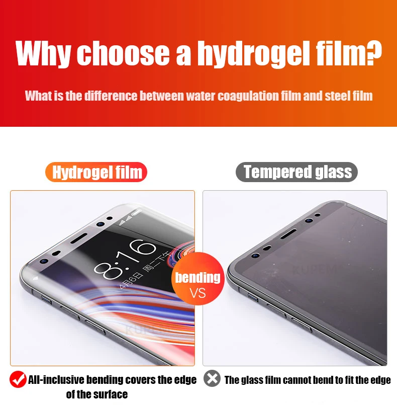Гидрогель предназначен для изогнутых экранов, так же, как нет пленки