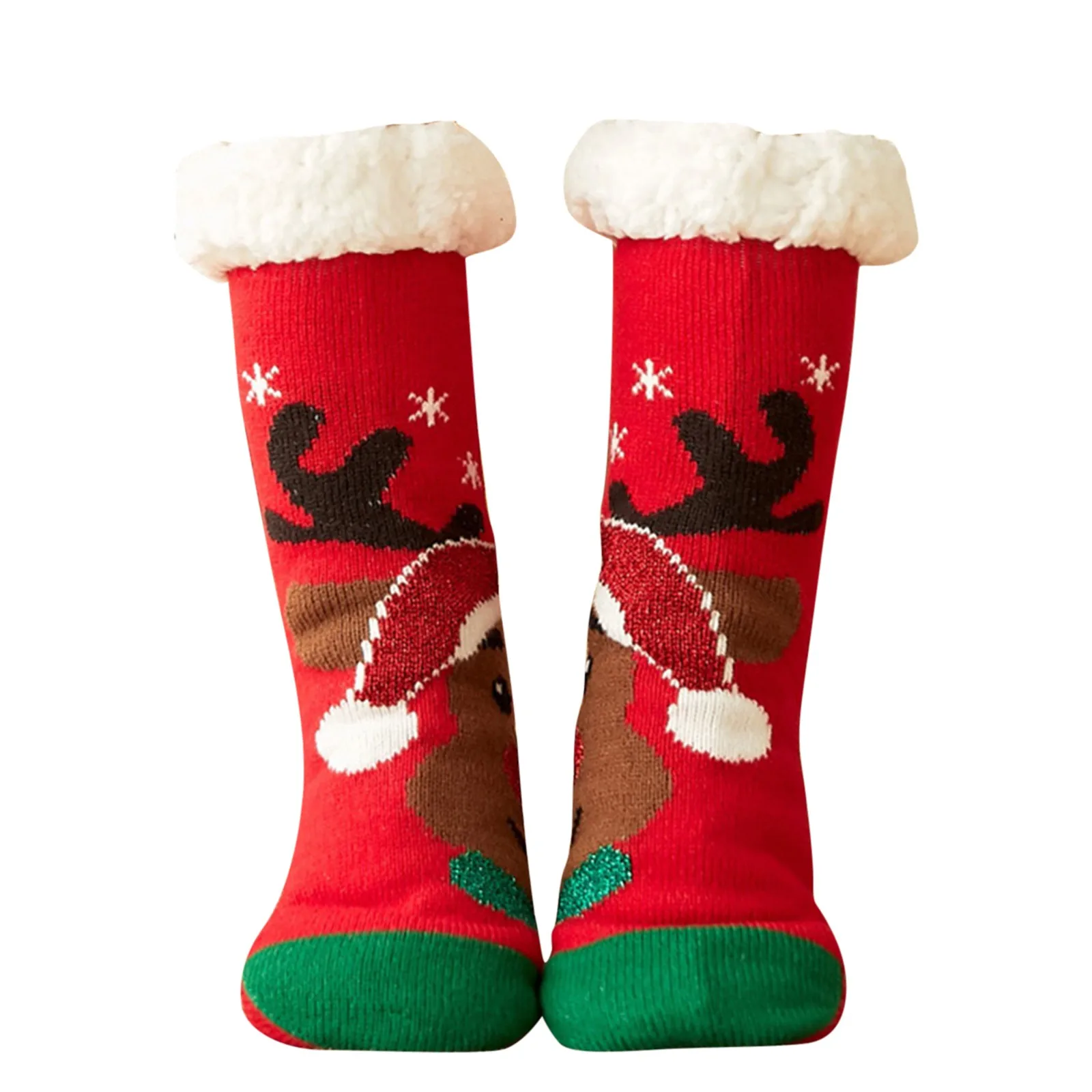 Рождественские носки, женские осенне-зимние носки до середины икры, носки для домашнего сна, носки с флисовой подкладкой, утепленные носки для ковра