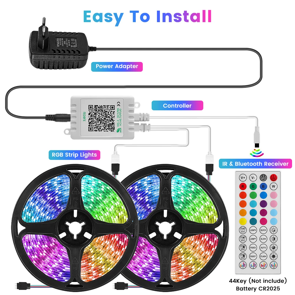 Светодиодная RGB лента, 12 В, RGB Светодиодная лента 5050, светодиодные лампы для комнаты, Диодная лента с Bluetooth для украшения спальни, подсветки телевизора