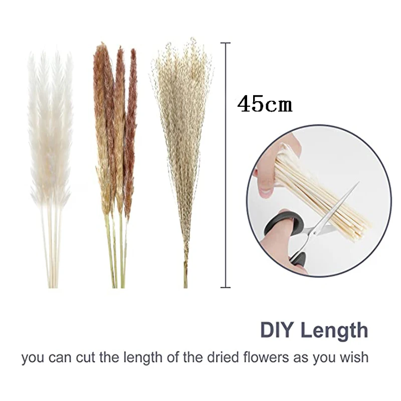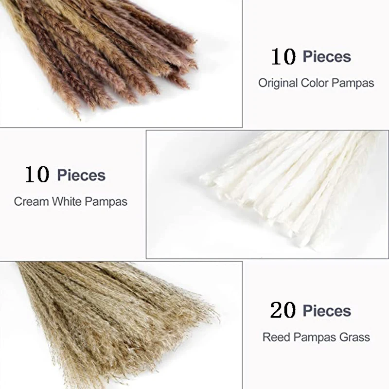 Напоминание: Перед использованием, вы можете поставить траву pampas на солнце в течение нескольких часов, чтобы сделать сухую траву pampas пушистой. Букеты пампасовых Тростников являются нормальными, потому что пампасовые тростниковые растения являются естественными сухими растениями. Как только вы положите его в вазу, выпадение будет небольшим.