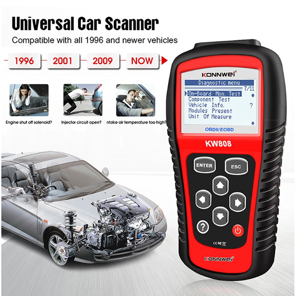 Автомобильный сканер автомобильный диагностический, KW808, OBD 2