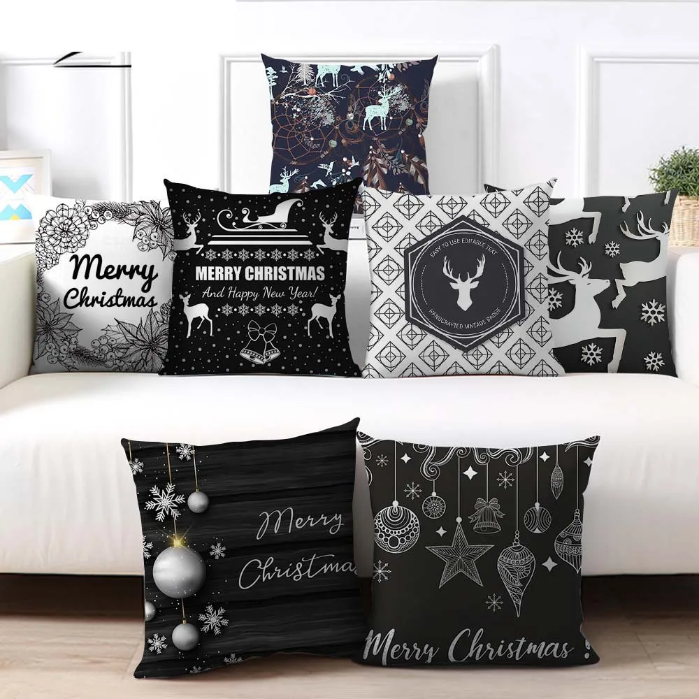 Мягкая Наволочка для дивана Fuwatacchi на Рождество с изображением дерева Санта-оленяЧерный чехол для подушки для спальни, декоративный чехол для подушкиПримечание: