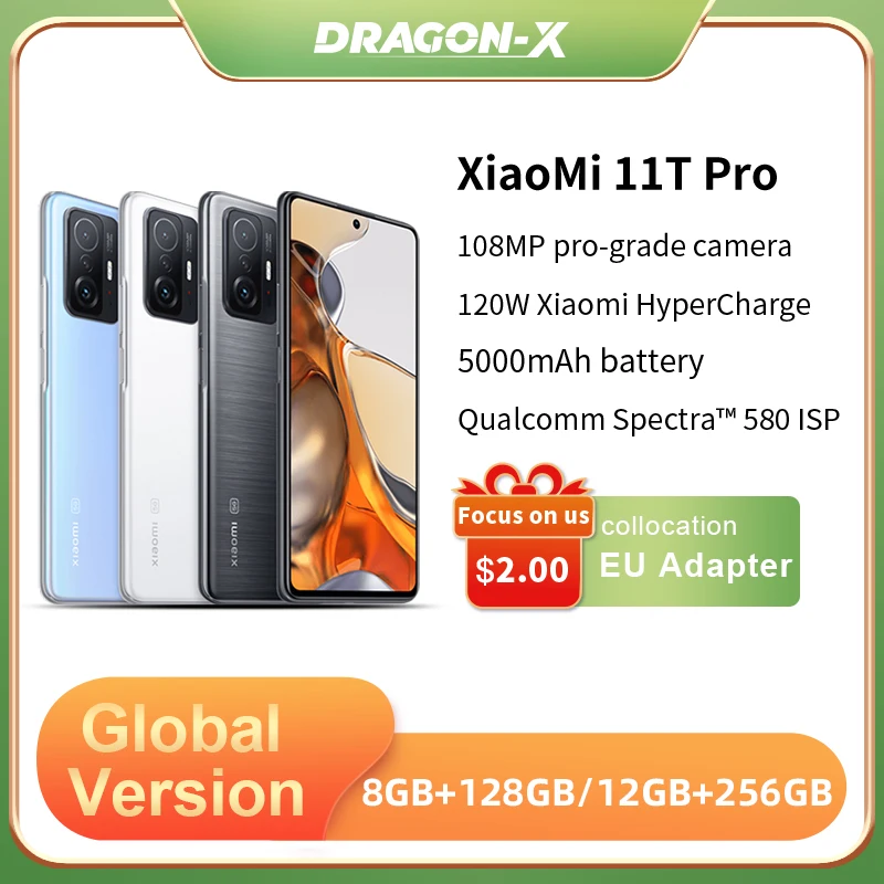 Глобальная версия смартфона Xiaomi 11T Pro 128G256G флагманский Восьмиядерный Snapdragon 888 камера 108MP 120Hz AMOLED 120W HyperCharge