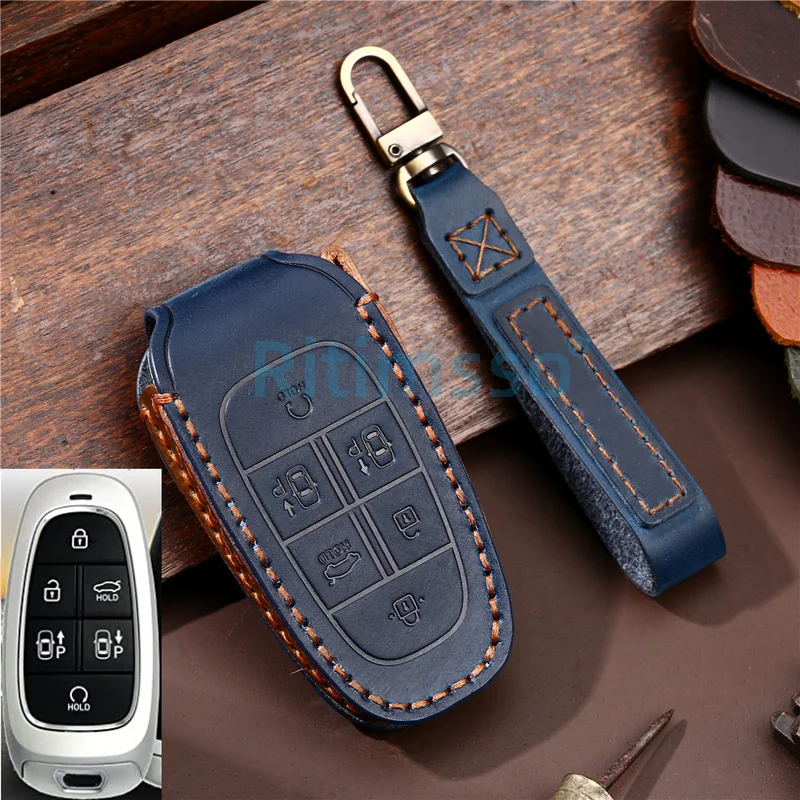 Новинка кожаный чехол для автомобильного ключа ручной работы для Hyundai Solaris Sonata Hybrid NEXO NX4 новый Grand Santa Fe Tucson 2021 2022 бесключевой доступ