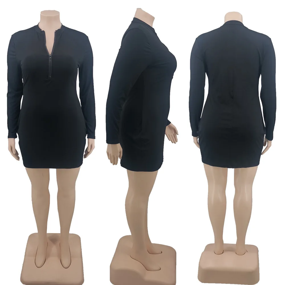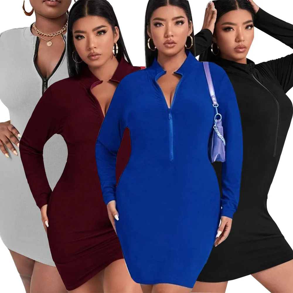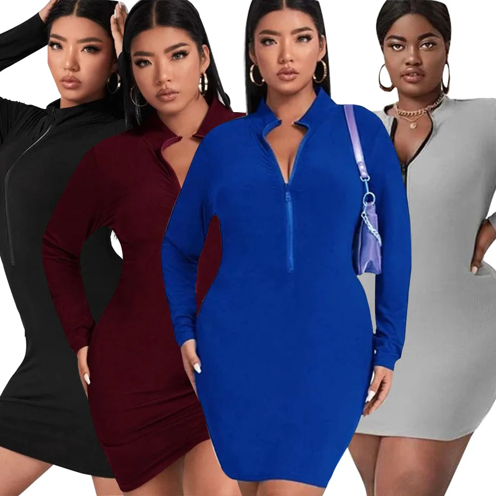 Женское платье с длинным рукавом, на молнии, с воротником-стойкой