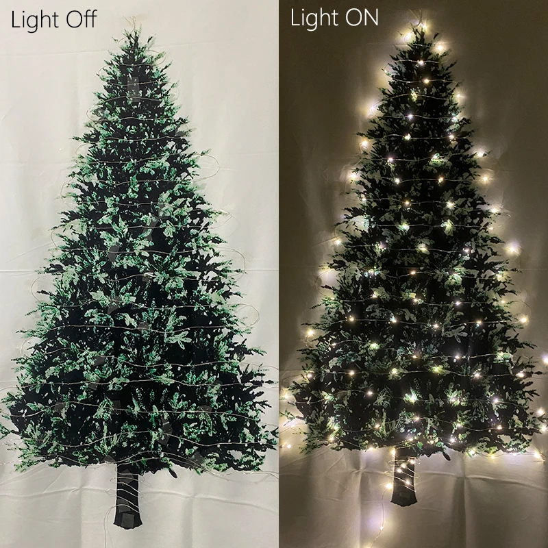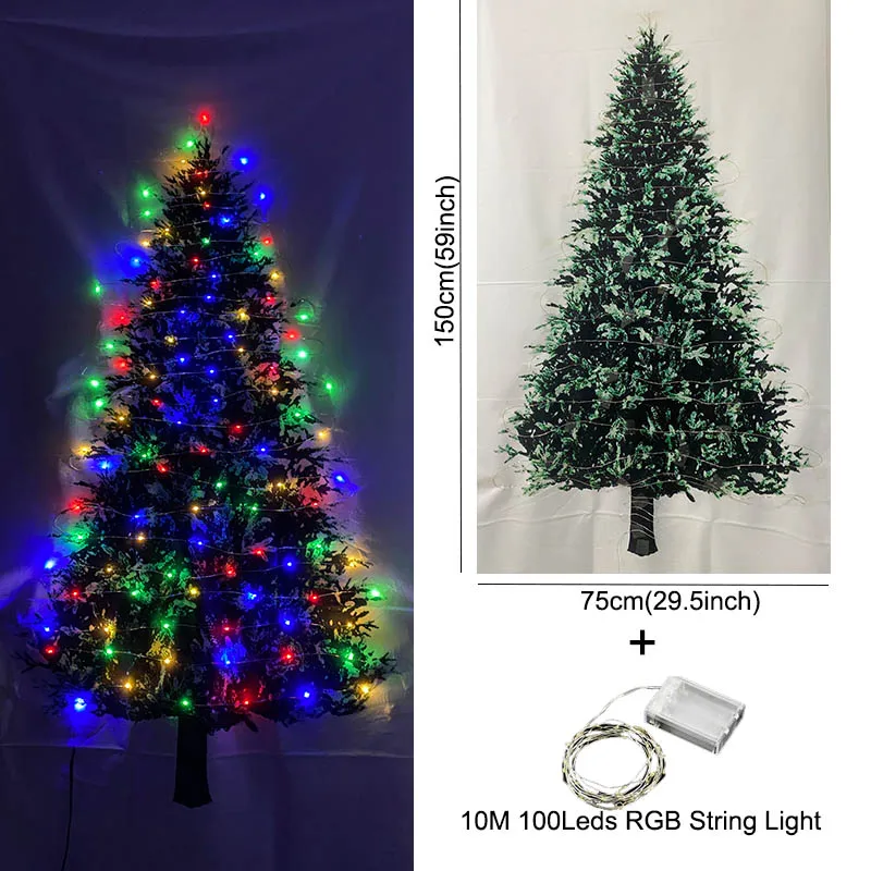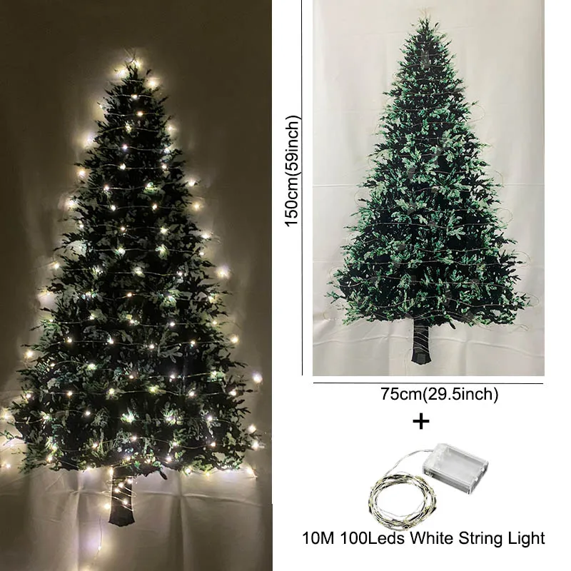 Рождественский гобелен 150x70 см, настенный подвесной гобелен на рождественскую елку с гирлянсветильник 10 м для спальни, гостиной, украшение