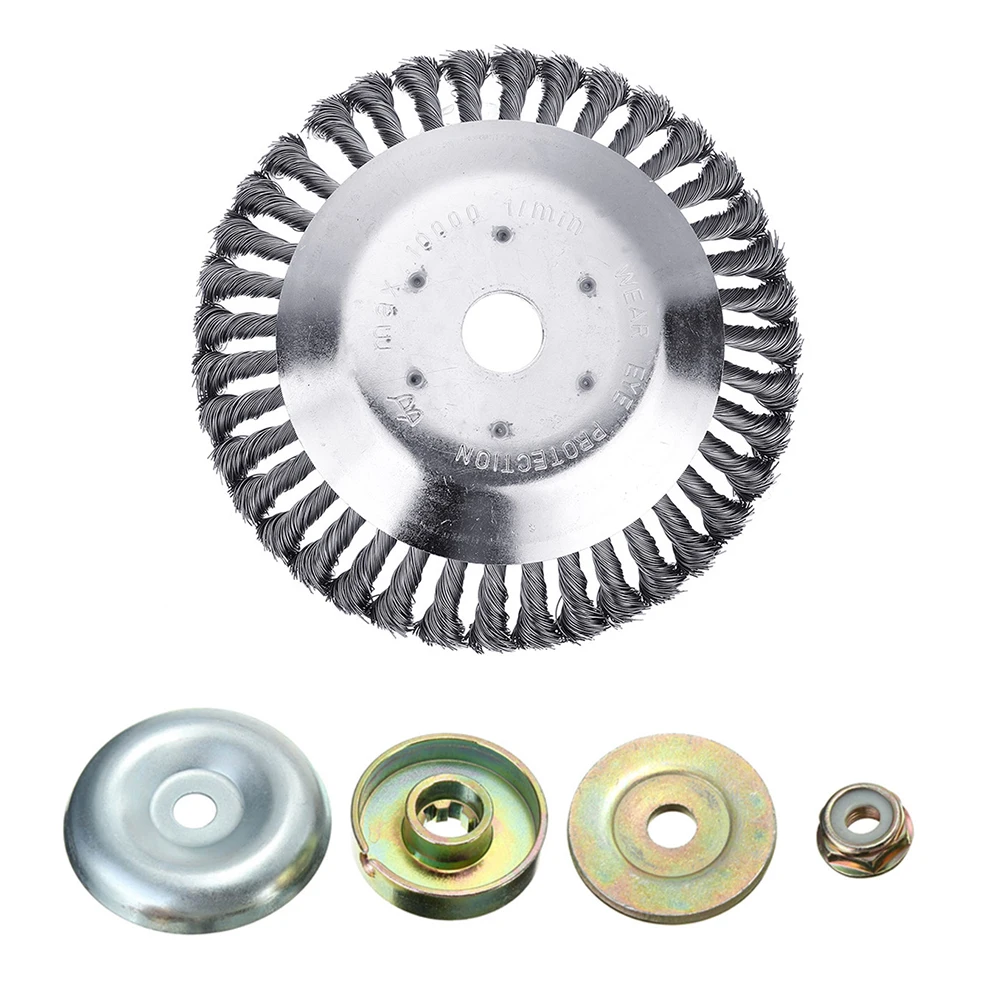 6/8 дюймовая стальная проволока диск садовая травка твист узел щетка газонокосилка трав Пожиратель триммер головка прополка резак инструменты сЗащитные чехлыХарактеристика:1. Изготовлен из высококачественной стальной проволоки, прочный.2. Эта стальная щетка в основном подходит для удаления заусенцев, удаления пыли, удаления оксида, очистки и полировки аксессуаров.3. Покрытие может улучшить качество металла и камня.4. Встроенная фиксирующая пластина для обеспечения целостности и безопасностиСпецификация:Товар: Новое проволочное колесо с травойМатериал: марганцевая стальная проволокаДиаметр: около 6 дюймов 150 мм, 8 дюймов 200 ммДиафрагма: 25,4 ммОснащен 4 рабочими головками для установкиИспользование: подходит для удаления сорняков, Моха, ржавчины и т. д.По сравнению со старой моделью, новая модель легче по весу, треугольник стальной проволоки зафиксирован, и он более стабильный.Примечание:В связи с различиями мониторов и эффектами освещения реальный цвет товара может немного отличаться от цвета на фотографиях. Спасибо!Возможны отклонения в 1-2 см вследствие измерений вручную.