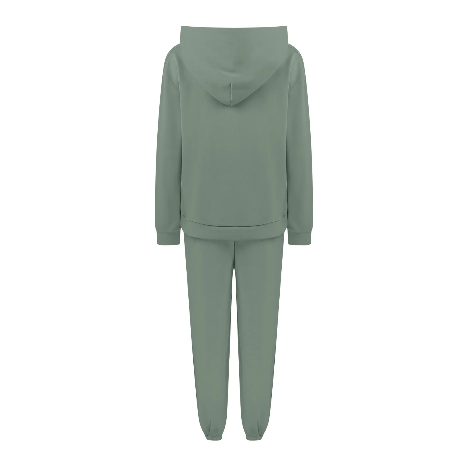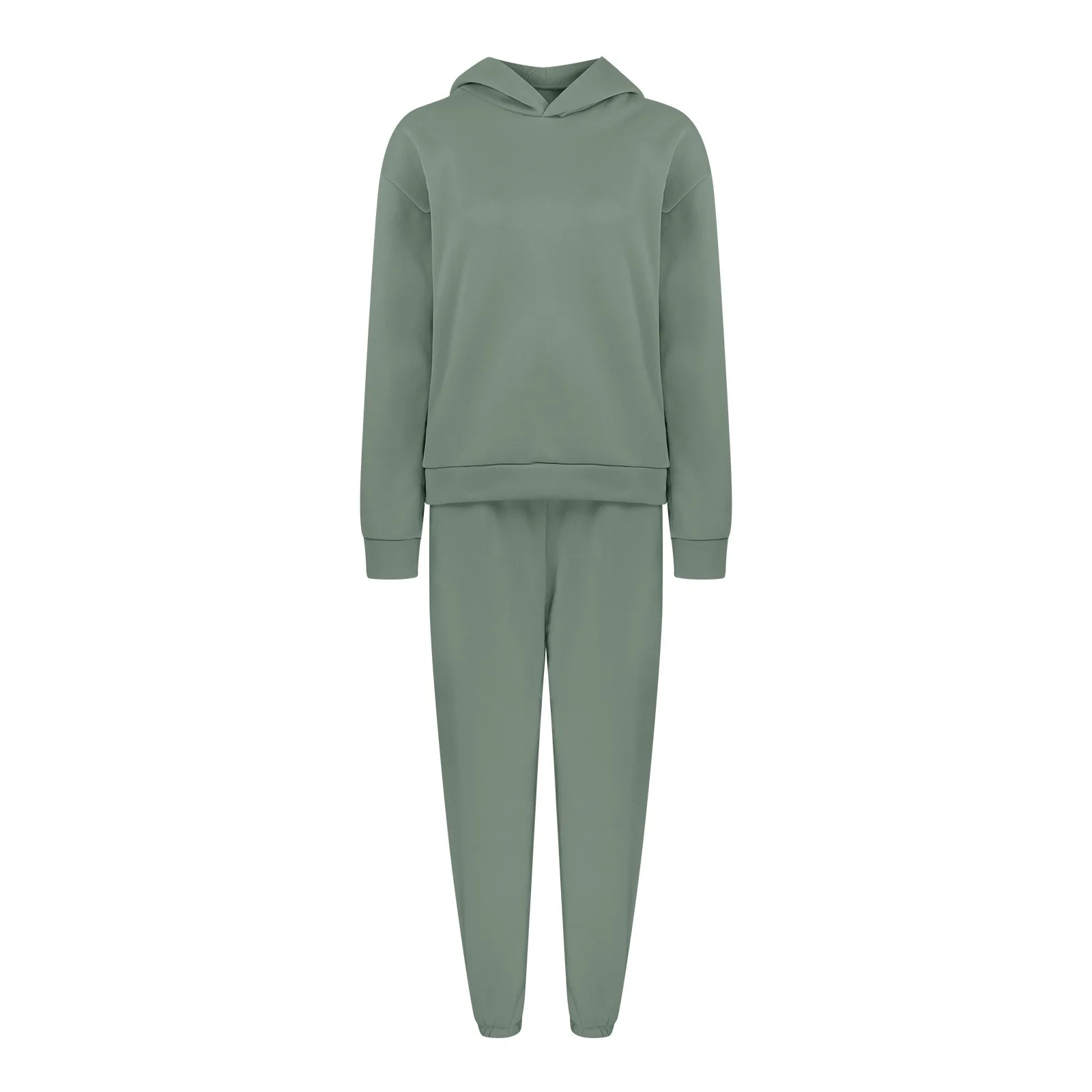 Женский Повседневный однотонный комплект из двух предметов, длинные штаны с капюшоном, пуловер с длинными рукавами, толстовки