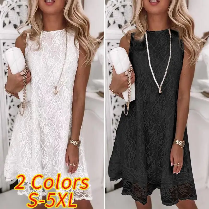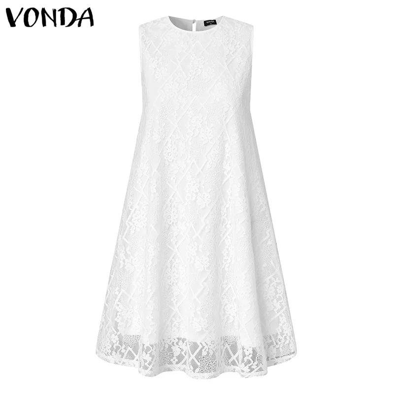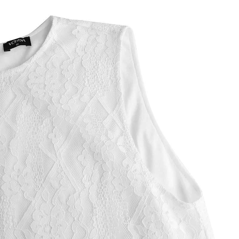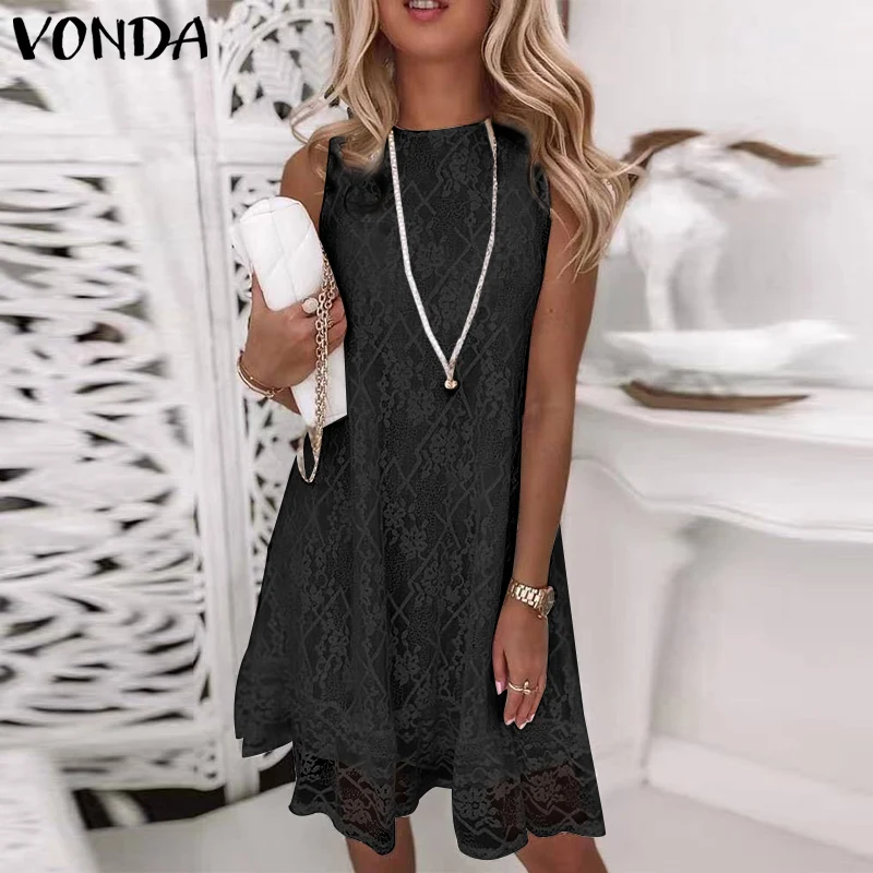 Вязаное кружевное платье VONDA 2022, летние сексуальные женские праздничные вечерние-платья без рукавов, пляжный сарафан, повседневный свободный сарафан на бретелях