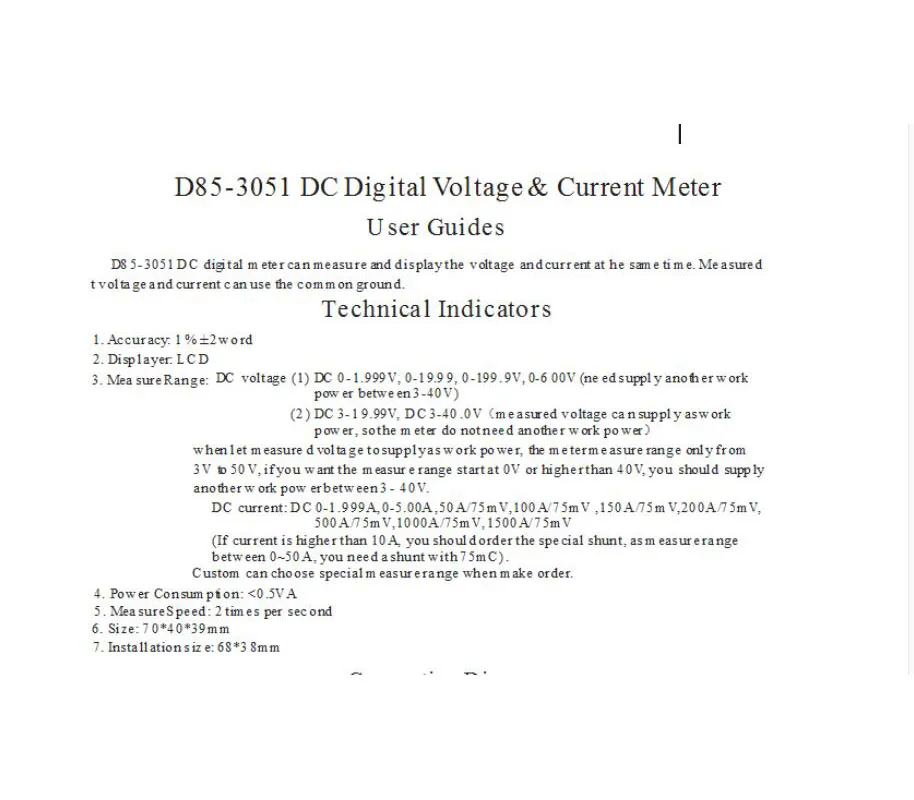 Dc 0-199,9 V 0-500A (нужен 500A шунт) точность не десятичной точки 1%