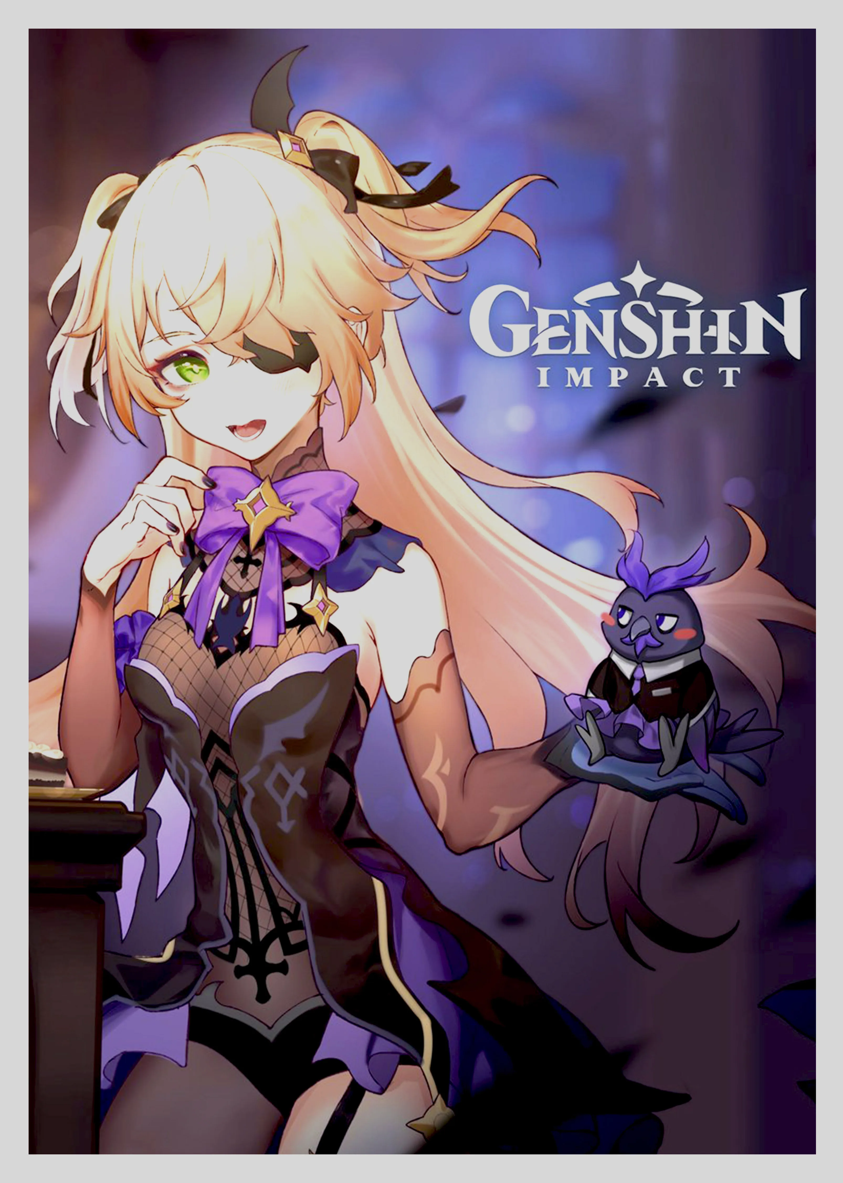 Японское аниме Genshin Impac, оригинальный Бог, классическое искусство, наклейка на стену в стиле ретро, под заказ