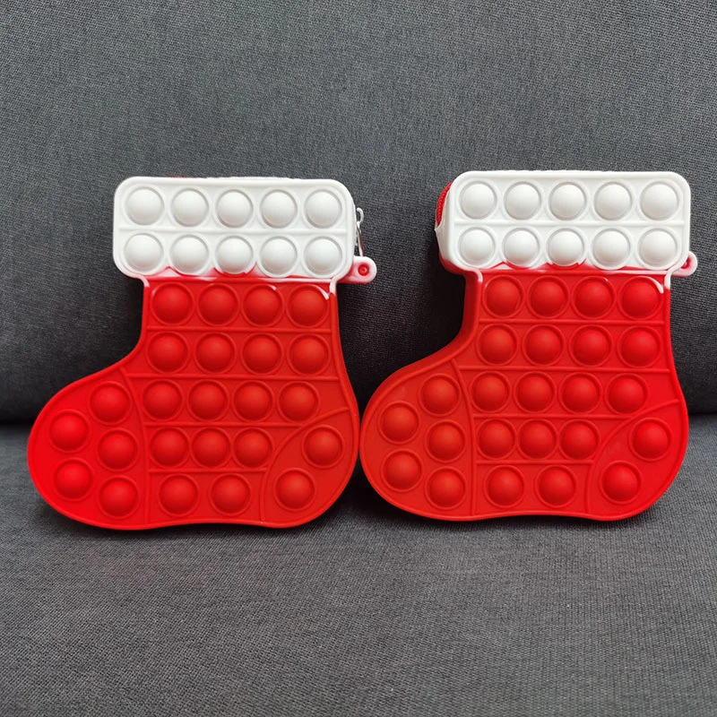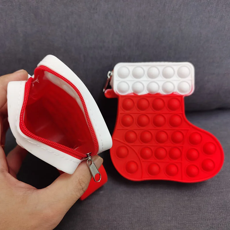 Поп силиконовые пузырьки рождественские носки Кошелек для монет пуш...