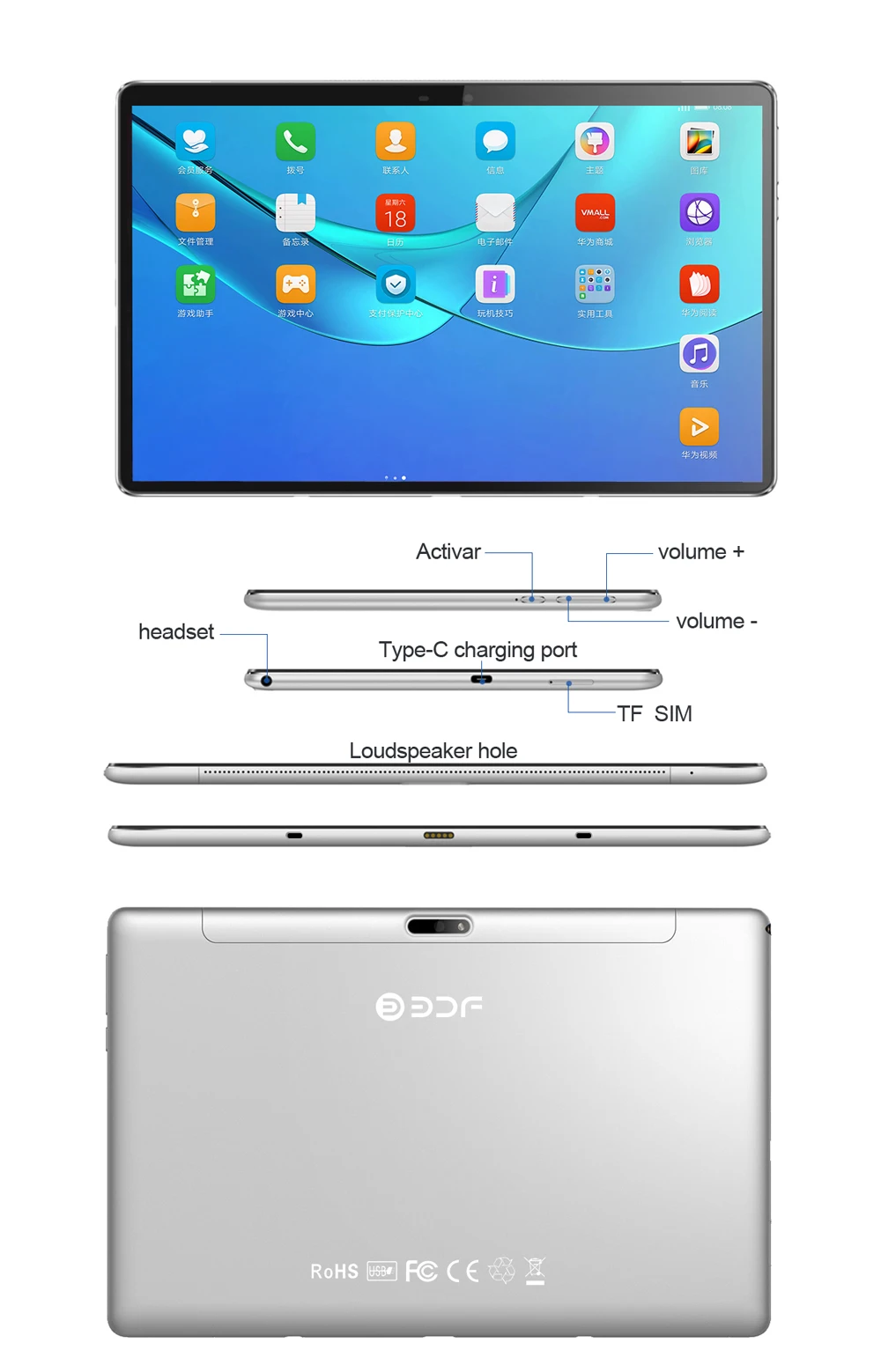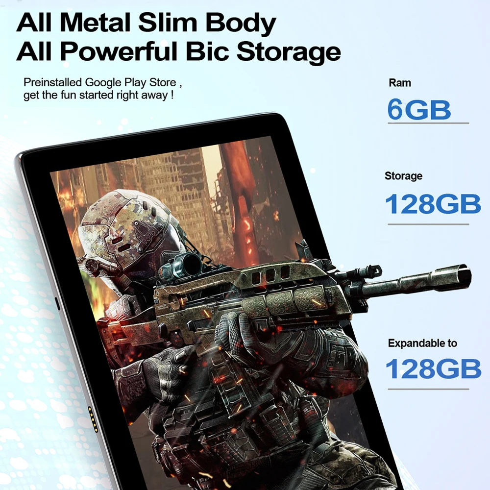 Планшет с 10,1-дюймовым дисплеем, ОЗУ 6 ГБ, ПЗУ 11,6 ГБ, Android 128