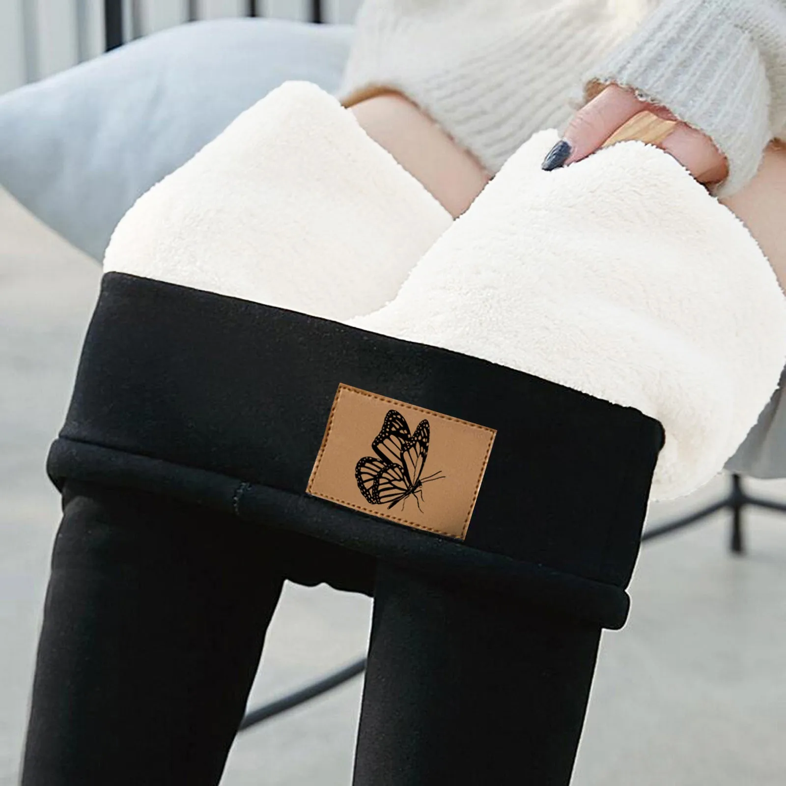 Женские утепленные бархатные кашемировые леггинсы, эластичные модные повседневные плотные брюки с бабочками и надписью, женские брюки, Осень-зима 2021