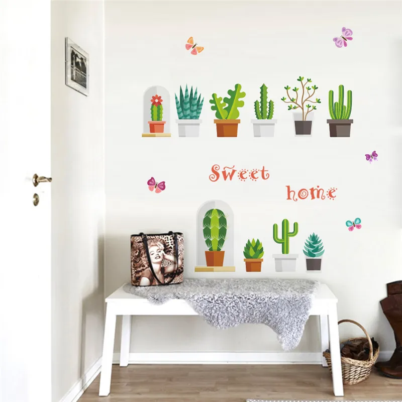 Кактус, цветочный горшок, настенные наклейки, украшение для дома, сделай сам, колючая груша, пасторальная роспись, искусство сделай сам, декоративные растения, настенные наклейки, клейкая лента