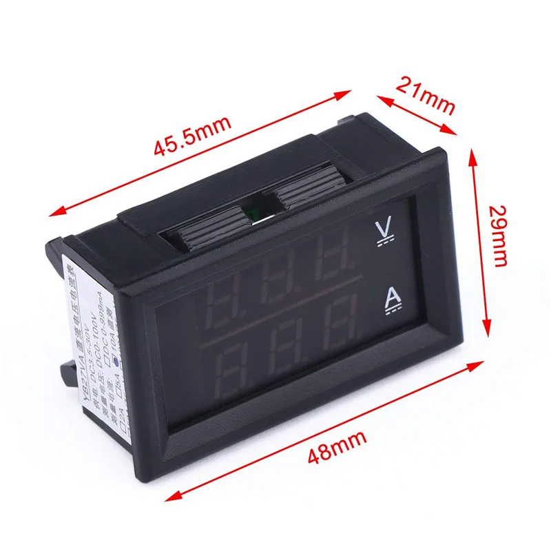 С небольшим размером x 29x21 мм), широкий диапазон измерений (постоянный ток 0-100 в; 0-10 а) и высокая точность процентов (± 1 цифра)