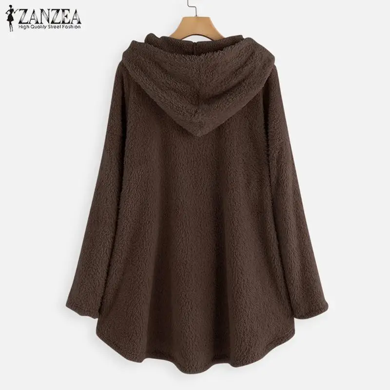 ZANZEA 2022 Женские повседневные однотонные осенние толстовки с капюшоном с длинным рукавом, плюшевый пуловер, верхняя одежда, Осеннее искусственное пончо