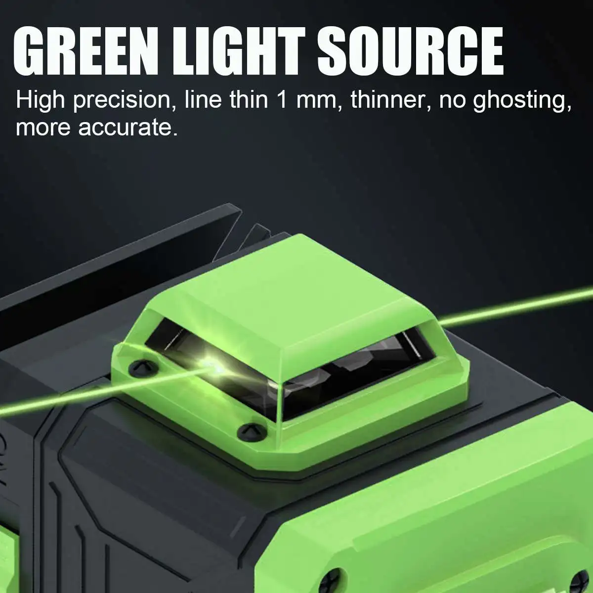 Особенности:-Точное измерение и более удобное в использовании.-4D 16/12/8 облучение линии, 360 ° без мертвого угла.-Crashworthy и анти-стук, 4D мягкая резина одетая, crashworthy и анти-стук.-± 3 ° автоматическая функция самовыравнивания. Звуковое предупреждение при превышении диапазона автоматического выравнивания.-Линия 8/12/16 может быть необязательной, подходит для различных случаев для удовлетворения различных инженерных потребностей.-Международный стандарт IP54 Водонепроницаемый и пыленепроницаемый, многократная защита, длительный срок службы в суровых условиях.-Внутренний и открытый универсальный, высокая яркость зеленый, внутри и снаружи четко, Дальняя проекция расстояния, высокая Лазерная высота, четкие линии.-Аккумулятор большой емкости 3000 мАч с более длительным сроком службы, длительным сроком службы, временем работы в режиме ожидания более 72 часов, рабочее время может длиться 4-8 часов.