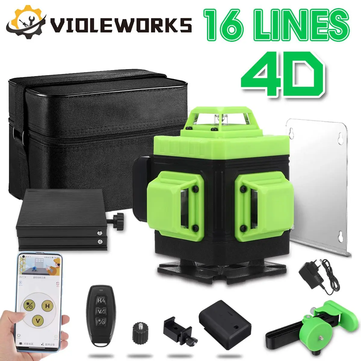16/12/8 линия 360 ° Горизонтальный Вертикальный крест 4D зеленый светильник лазерный уровень самонивелирующийся Контроль приложенияСпецификация:Бренд: VIOLEWORKSЛазерные линии (опционально): линия 16/12/8Тип пульта: инфракрасный пульт дистанционного управления и пульт дистанционного управления (2 в 1)Цвет лазера: зеленыйРасстояние крепления стены: 7 ммГоризонтальная и вертикальная точность: + 0,2 мм/10 mДлина волны: 505nm-520nmДиапазон автоматического выравнивания: ± 3 °Степень вращения: 360 °Функция слэш: ДаУровень защиты: IP54 пылезащитный и водонепроницаемыйРабочая температура: -20 ℃ ~ 50 ℃Емкость аккумулятора: 3000 мАчРабочая среда: внутри/снаружиВремя работы: 4 ~ 8 чМатериал: инженерный пластик шасси из алюминиевого сплаваПрименение: вспомогательная плитка для фиксации, украшения стен, напольная плитка для фиксации, Лестничные Поручни, пушистый потолок, напольная плитка, штукатурка.