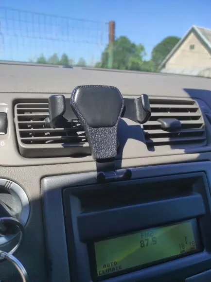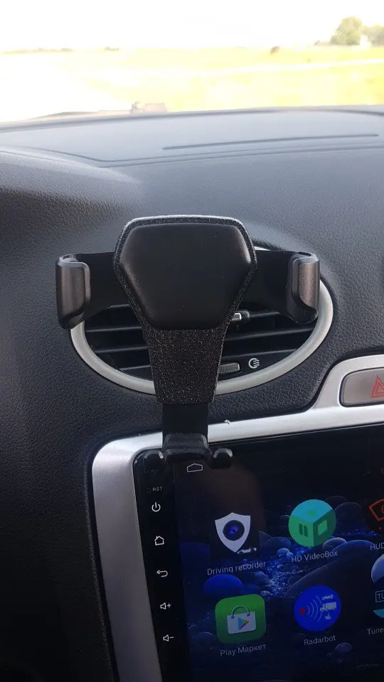 Благодаря держателю телефона, что совсем не плохо, из-за зуба на креплении, на выходе крепится ИК-время. Телефон вполне подходит, Samsung Galaxy S9 + легко сидит.