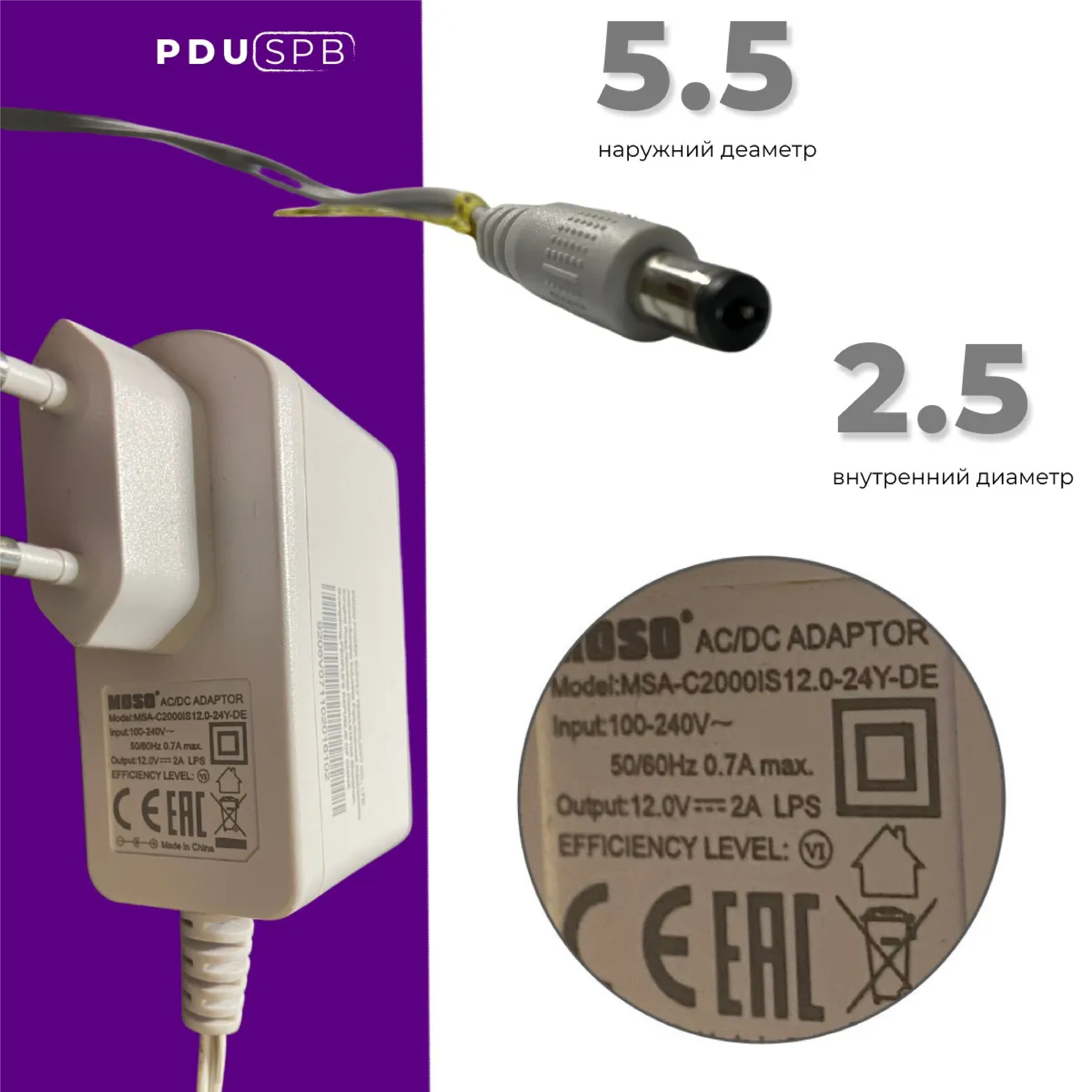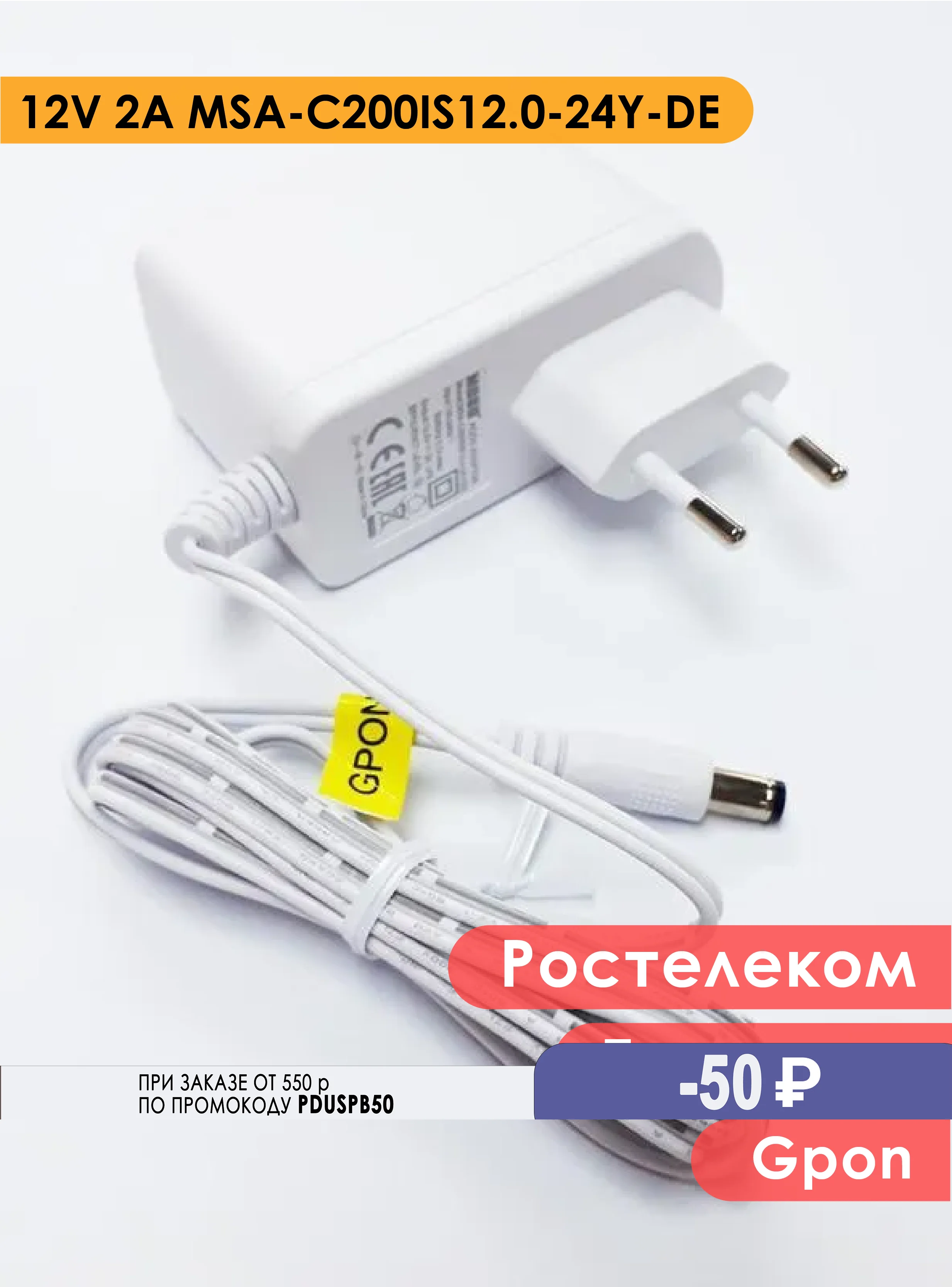 Оригинальный блок питания для Ростелеком Триколор Gpon MOSO 12V 2A (MSA-C200IS12.0-24Y-DE).