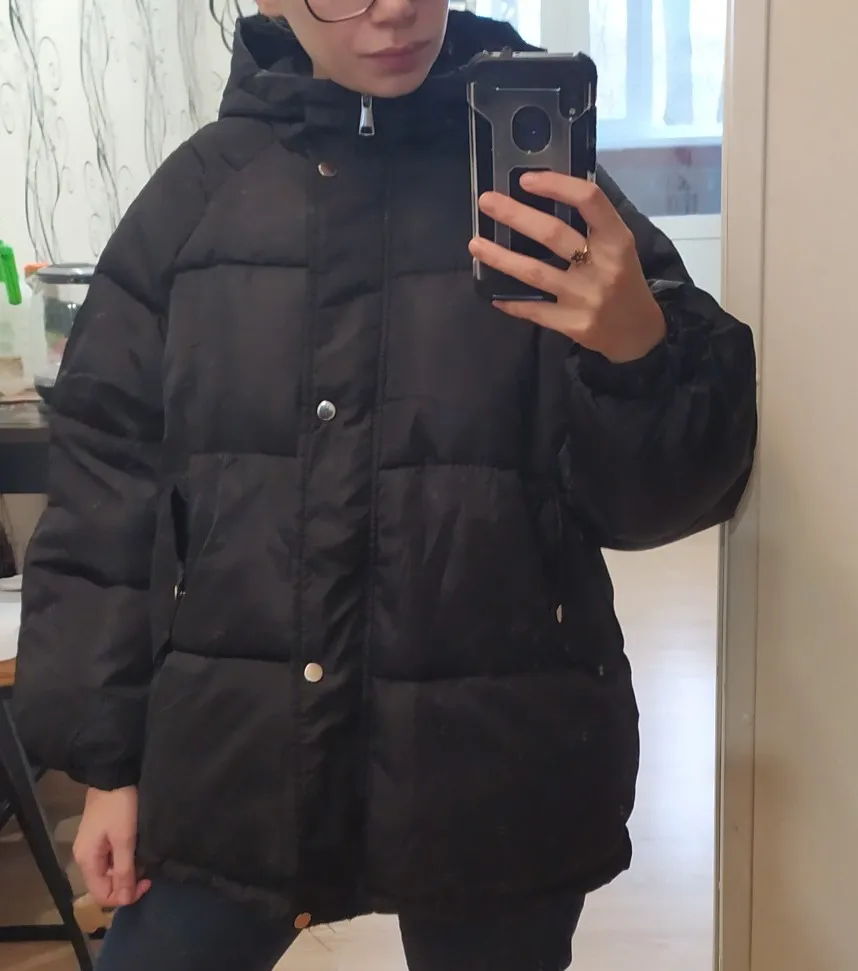 Куртка женская утепленная с капюшоном, однотонная пуховая куртка ов...
