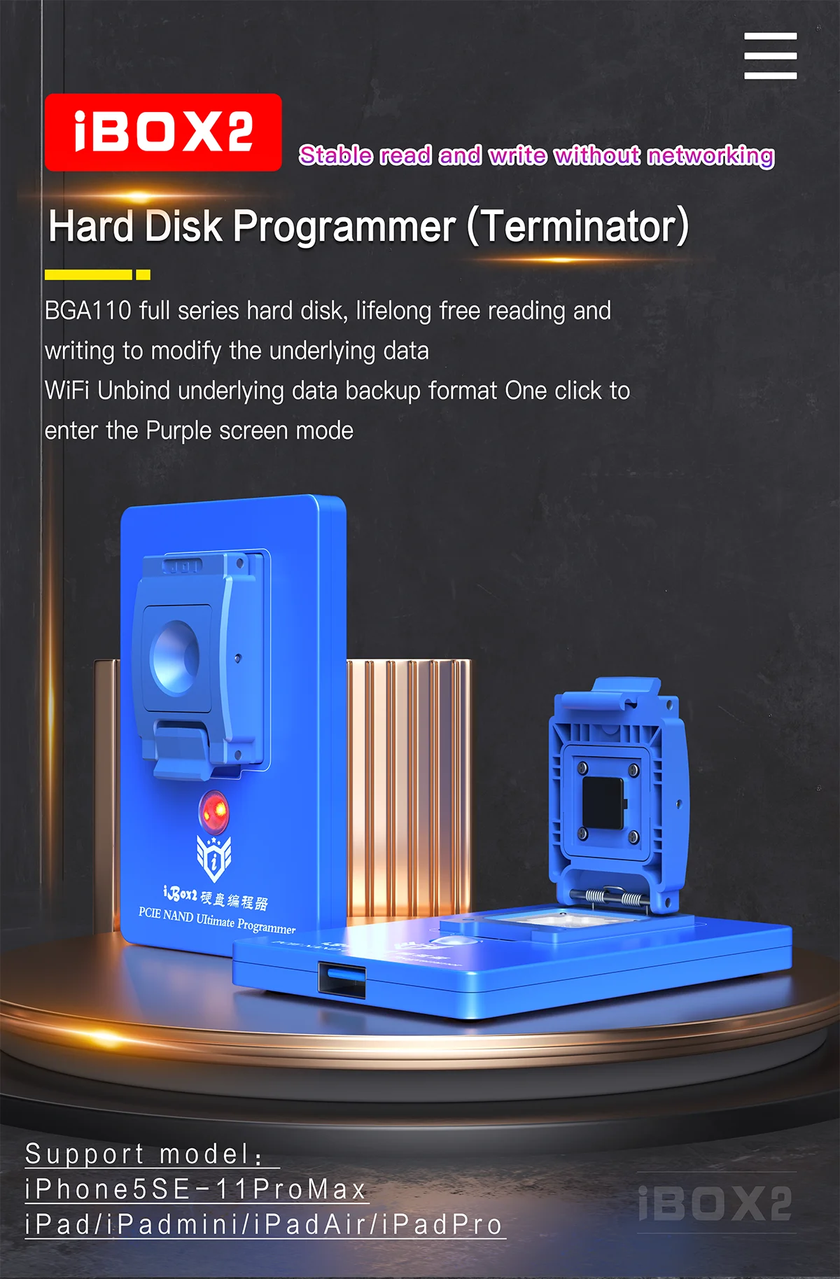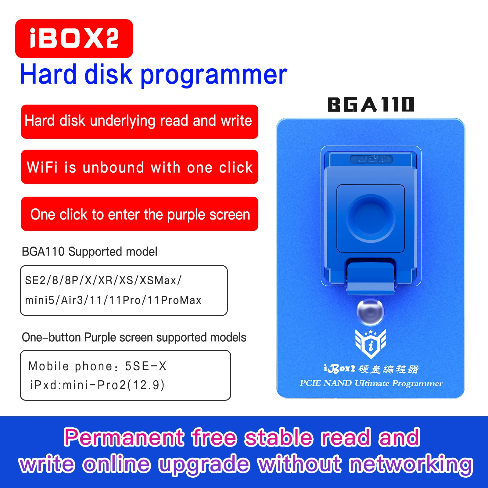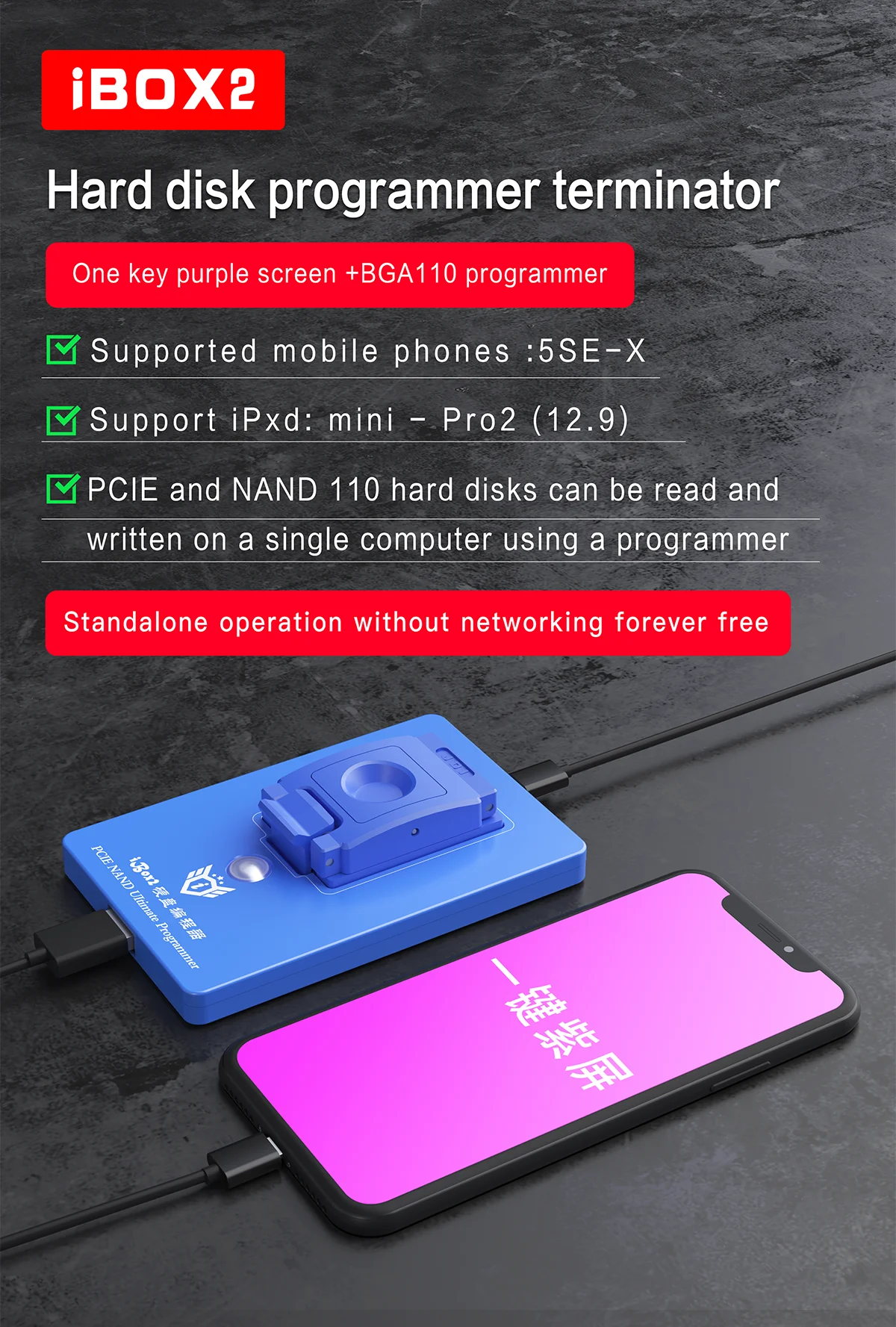 Программатор жесткого диска iBOX2 BGA110 PCIE для iPhone SE-11 PRO MAX Ipad DFU, один щелчок, чтобы войти в фиолетовый Sceeen Nand считать запись