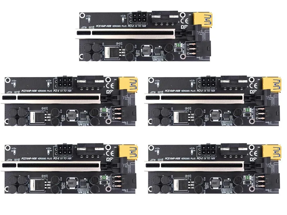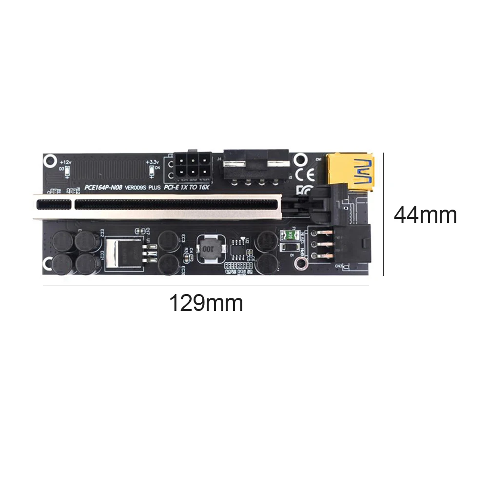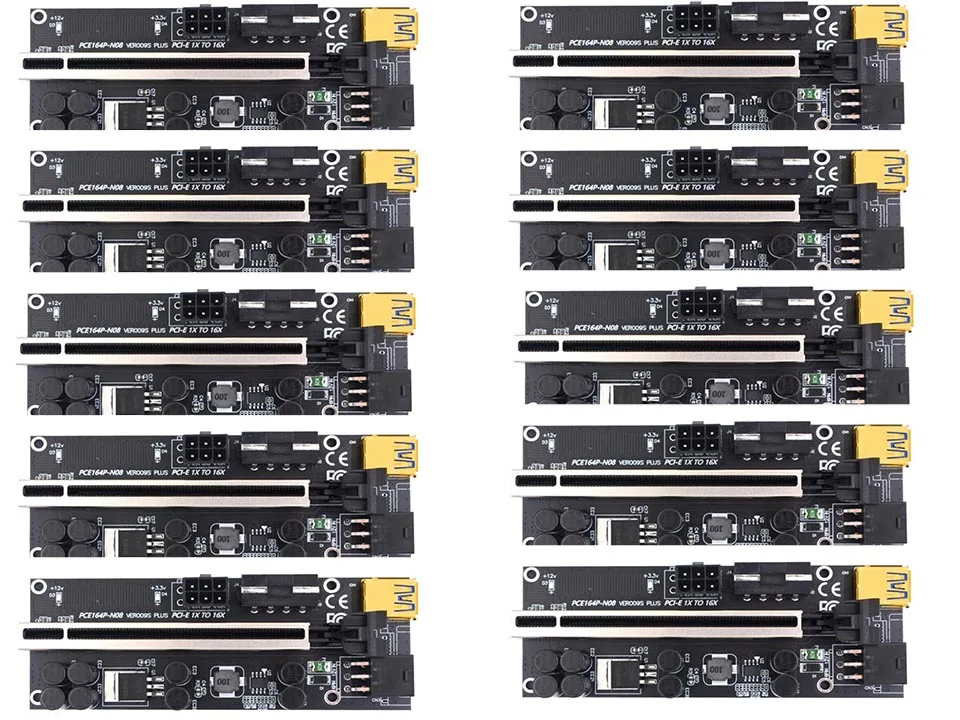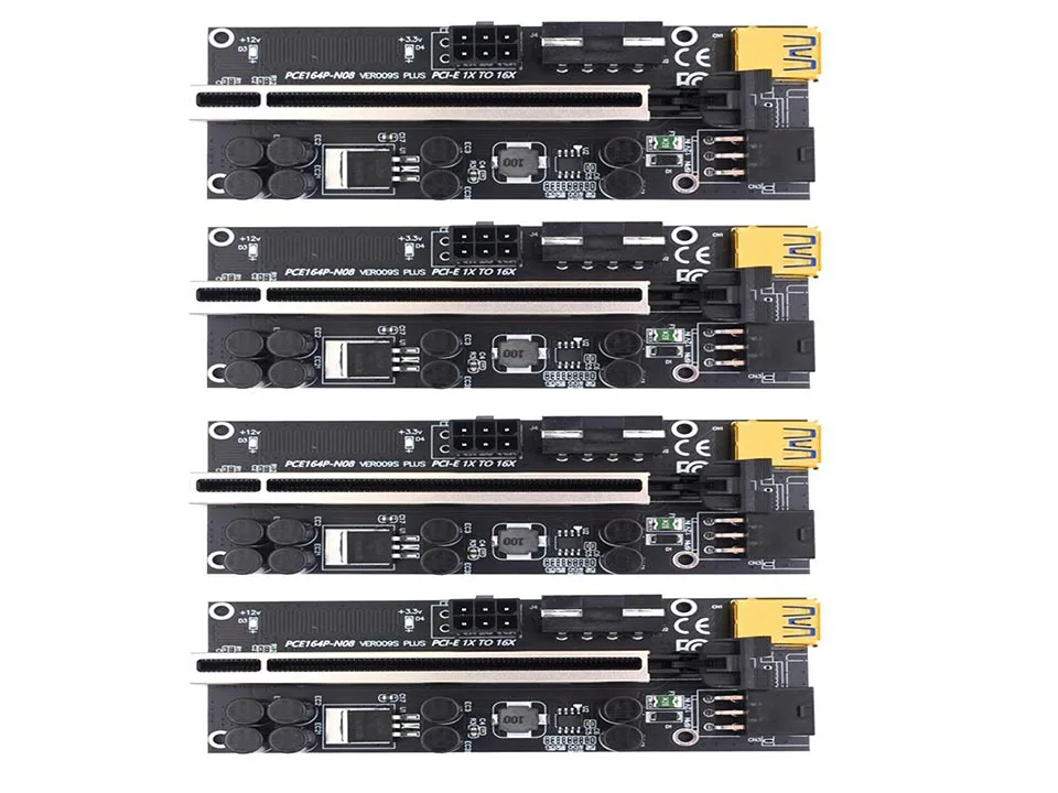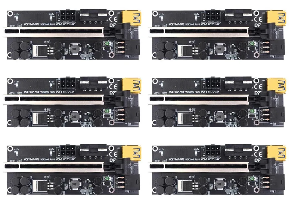 VER009S Plus PCIe Riser Card USB 3,0 кабель PCI-E Express 1x к 16x удлинитель адаптер для GPU Miner Bitcoin BTC MiningХарактеристика:Позолоченные контакты, хорошая производительность, используется для длительного времени.Эта карта PCI-E 16X имеет 8 конденсаторов, чтобы сделать источник питания стабильным и надежным.Стабильное сопротивление и имеет несколько светодиодный ламп, чтобы показать рабочий статус.С жесткими дисками SATA 6-pin порт, также может уменьшить нагрузку на материнскую плату.С фиксирующей пряжкой, позволяет зафиксировать видеокарту, поэтому карта не будет легко падать.Спецификация:Длина кабеля USB 3,0: около 60 смПорты и разъёмы: PCI-E x16 слот USB 3.0 Порты и разъёмы, в том числе SATA 6-Pin разъем, Molex 4-контактный слотЦвет: черныйРазмер: 129x44x1 0 мм/5,08x1,73x0,39 "(приблизительно)Примечание:Возможны незначительные отклонения в размере из-за ручного измерения, различных методов измерения и инструментов.Изображение может не отражать фактический цвет изделия из-за различного фотографирования светильник, угол и дисплей монитора.