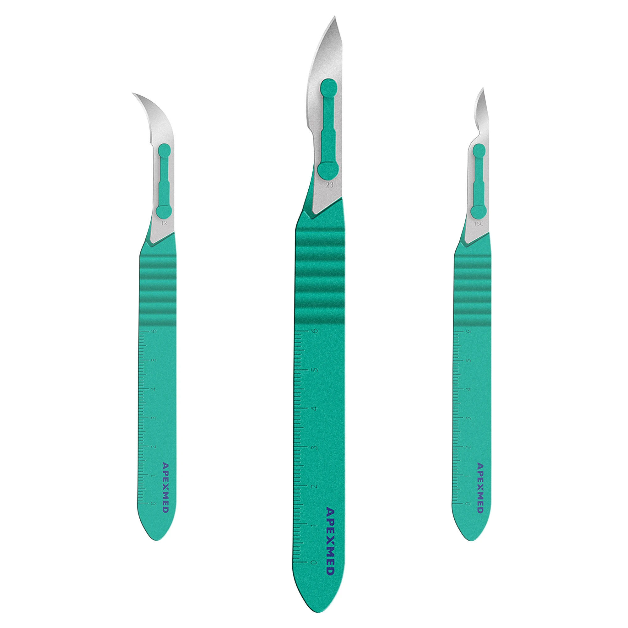 Скальпель медицинский хирургический одноразовый стерильный с лезвием из нержавеющей стали 10-25, 10 штук, Apexmed