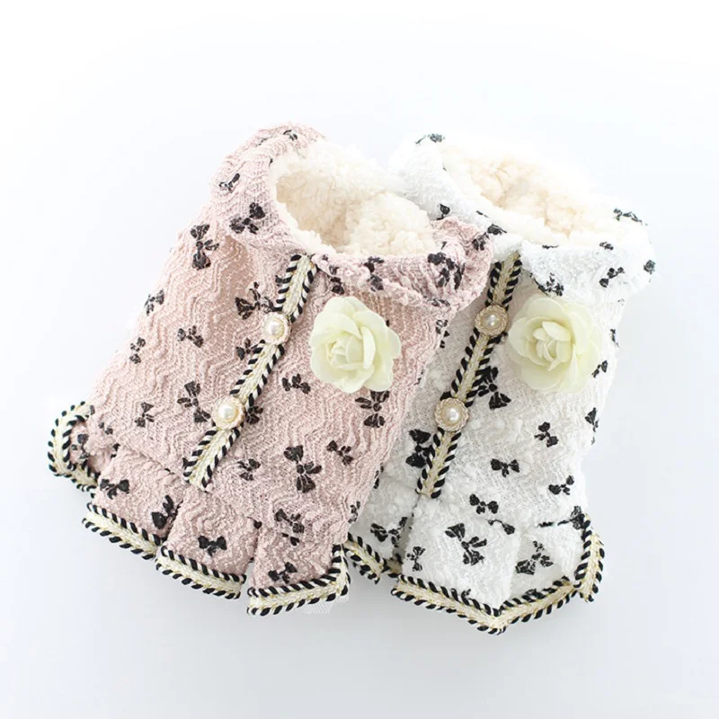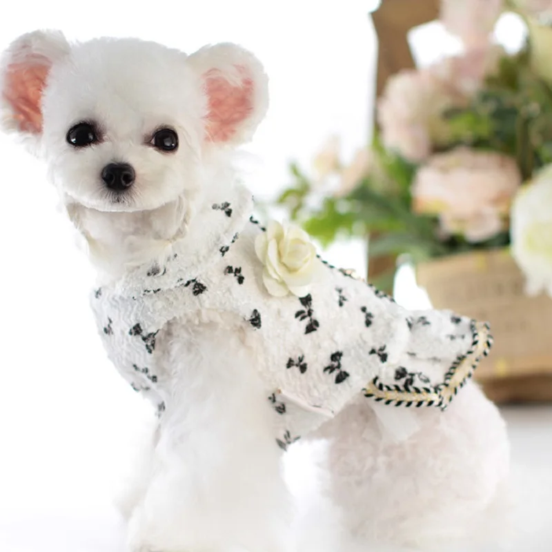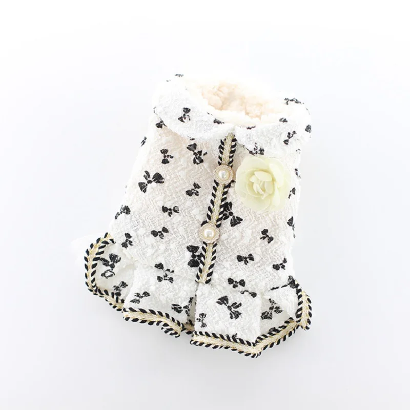 Осенняя одежда для собак, платье принцессы с цветами для домашних животных, теплый флисовый внутри XS S M L XL