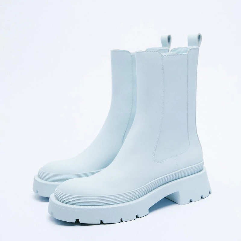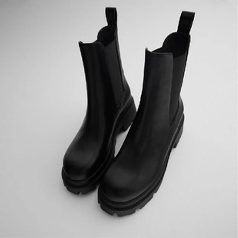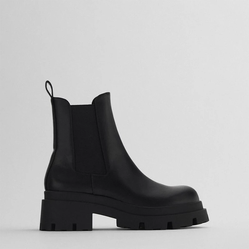Женские ботинки челси Za, роскошные эластичные ботинки из искусственной кожи на толстой подошве, модные полусапожки на молнии для девушек
