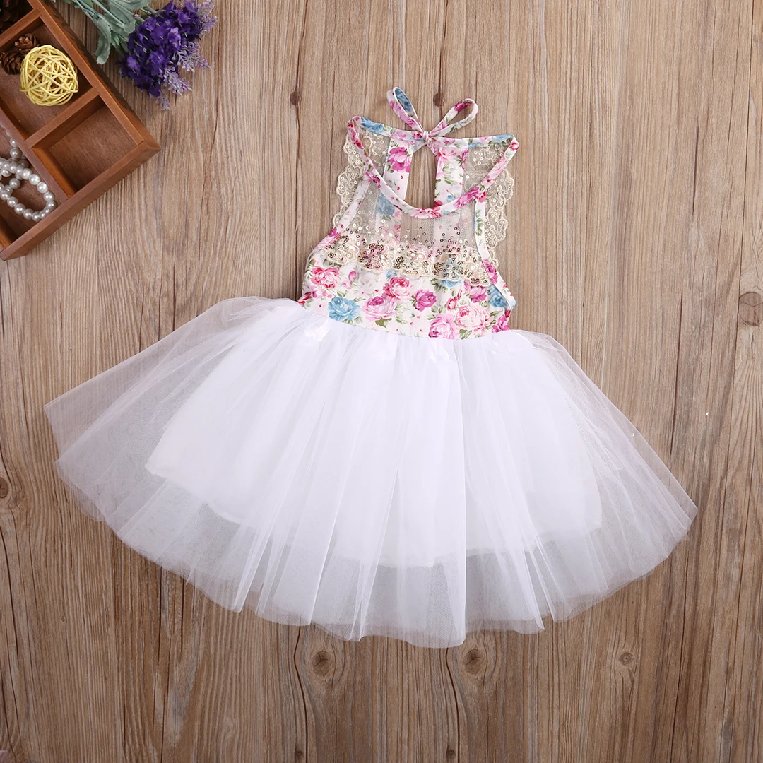 Летнее фатиновое платье-пачка с цветочным рисунком для маленьких де...