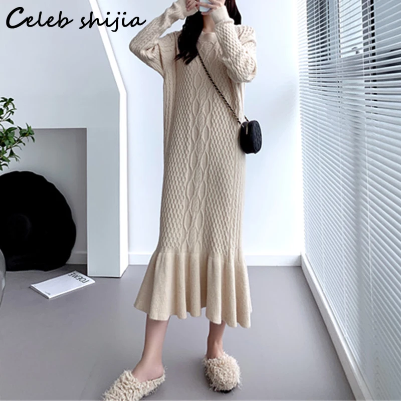 Женское вязаное платье-свитер SHIJIA, элегантное винтажное свободно...