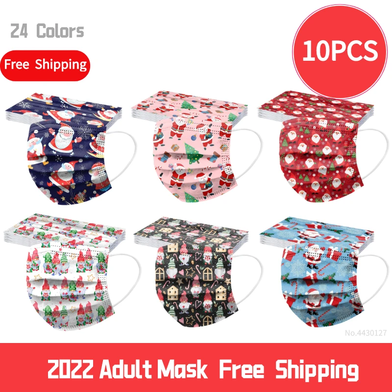 10 шт. маски для взрослых 2022 Маска с новогодним принтом для женщи...