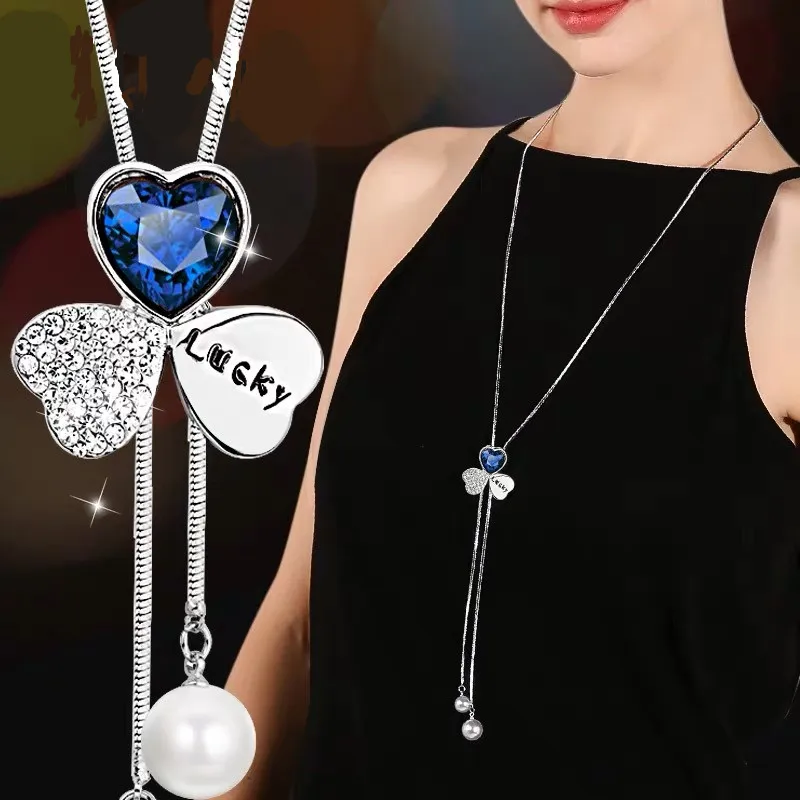Женское ожерелье с подвеской, длинная цепочка для свитера, декоративная подвеска с кристаллами