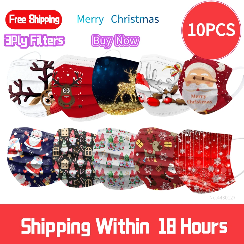 10 шт., одноразовые рождественские маски для взрослых и женщин
