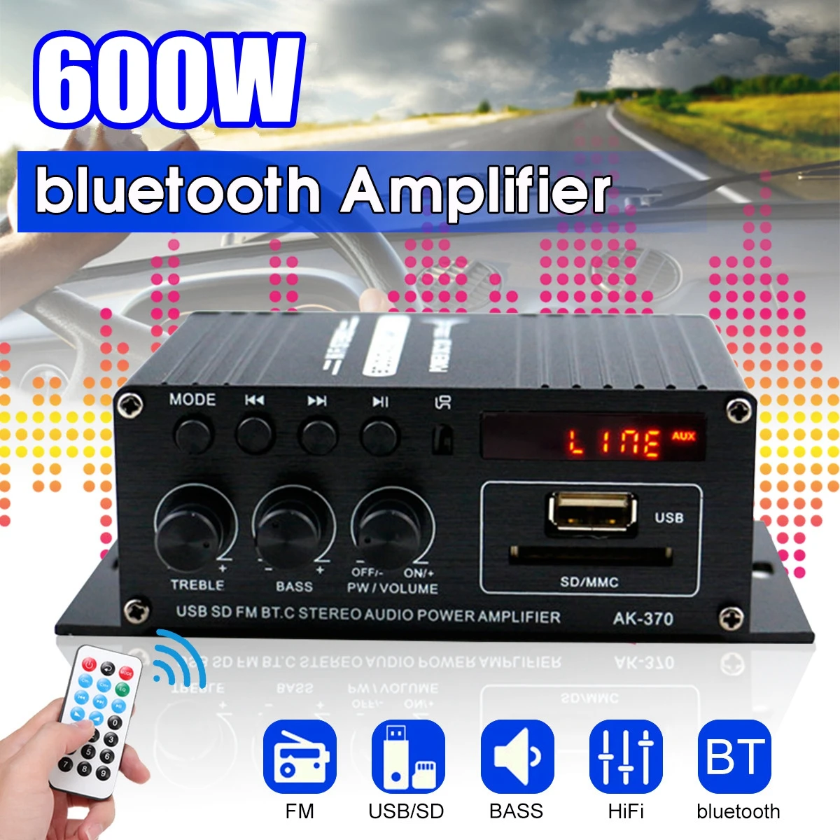 Усилитель мощности AK380AK370AK170, аудиоусилитель для домашнего кинотеатра, караоке, 2-канальный усилитель Bluetooth класса D, USBSD AUX вход