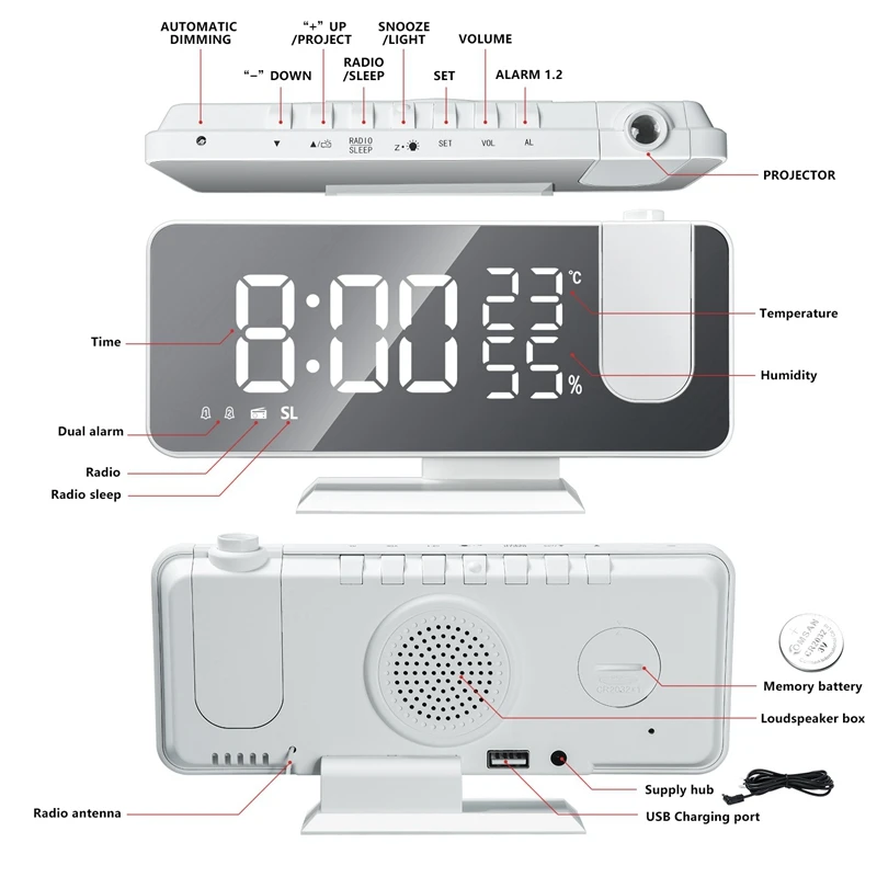 Цифровой FM-радиоприемник, будильник с проекцией, умные настольные ...