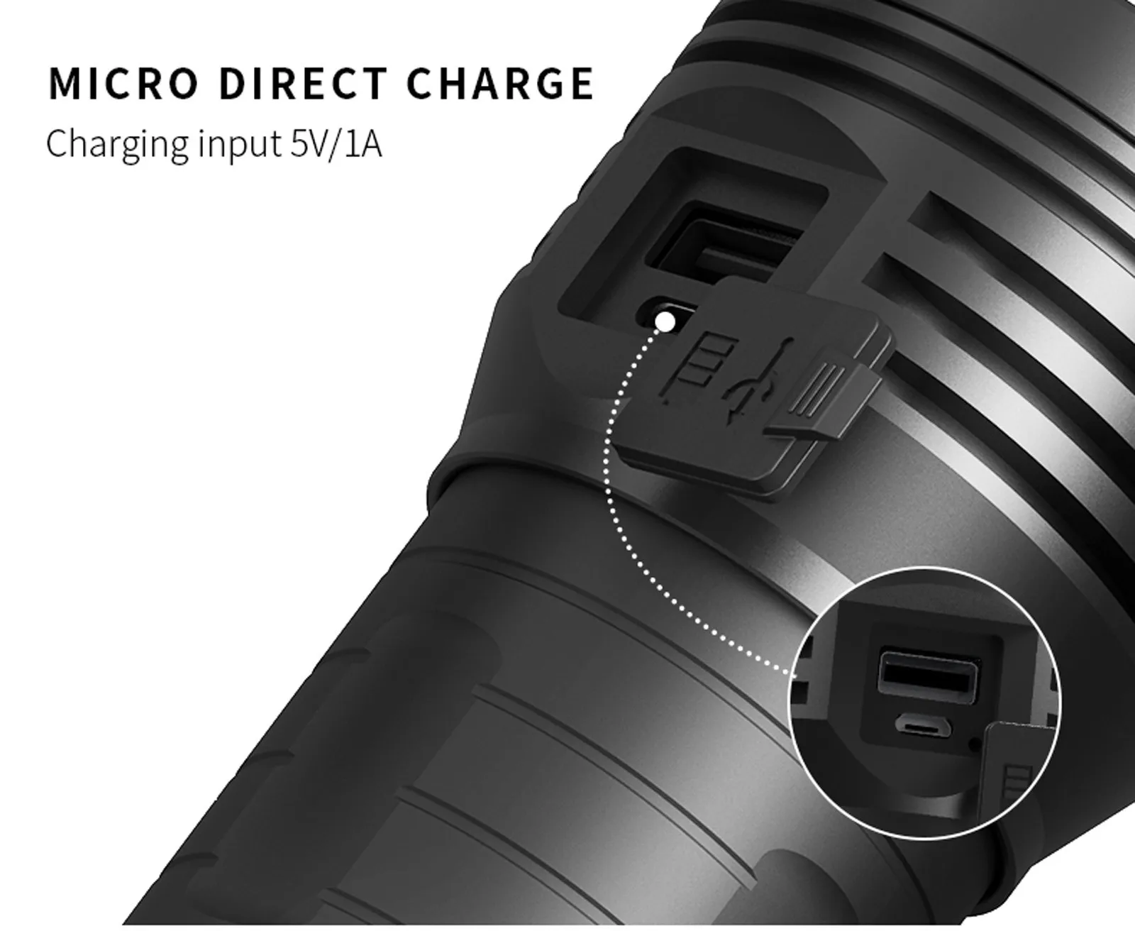 Параметры продукта Бренд: Pocketman Модель: XF маленькая стальная пушка Цвет: черный Светильник источник: XHP90 Режимы: 3 режима (высокий-низкий-Стробоскоп); (нажмите и удерживайте для выключения 2s) Материал: алюминиевый сплав Диапазон: 300-500 метров Угол луча: 120 градусов Аккумулятор: встроенный аккумулятор 4*18650 Переключатель: нажмите переключатель Метод зарядки: зарядка через микро порт Вход и выход: 5 В 1A Водонепроницаемость: IPX-5 Количество лампочек: три