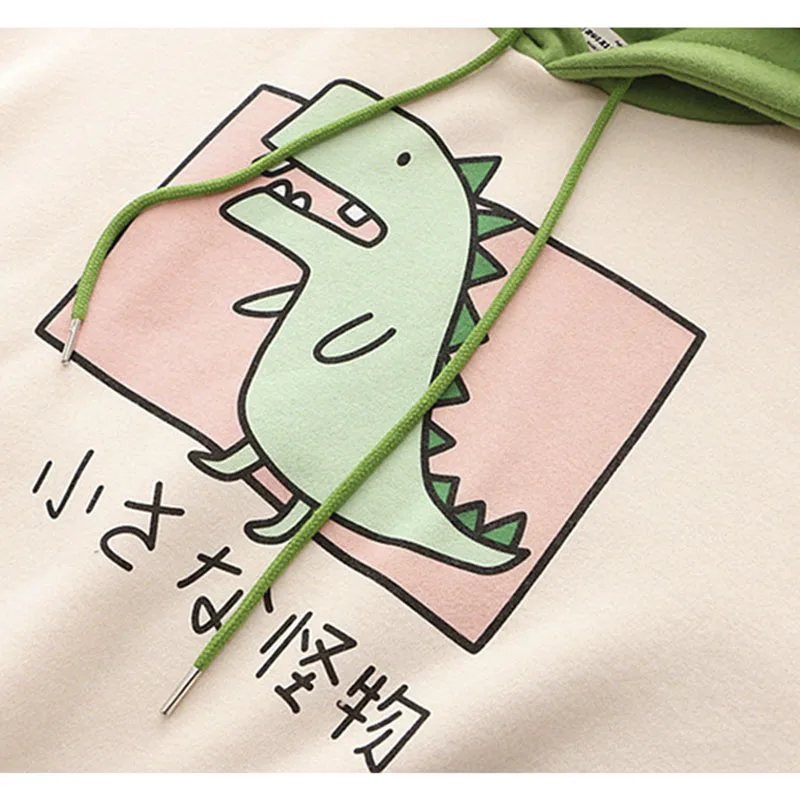Женская толстовка с капюшоном и принтом динозавра, в Корейском стиле