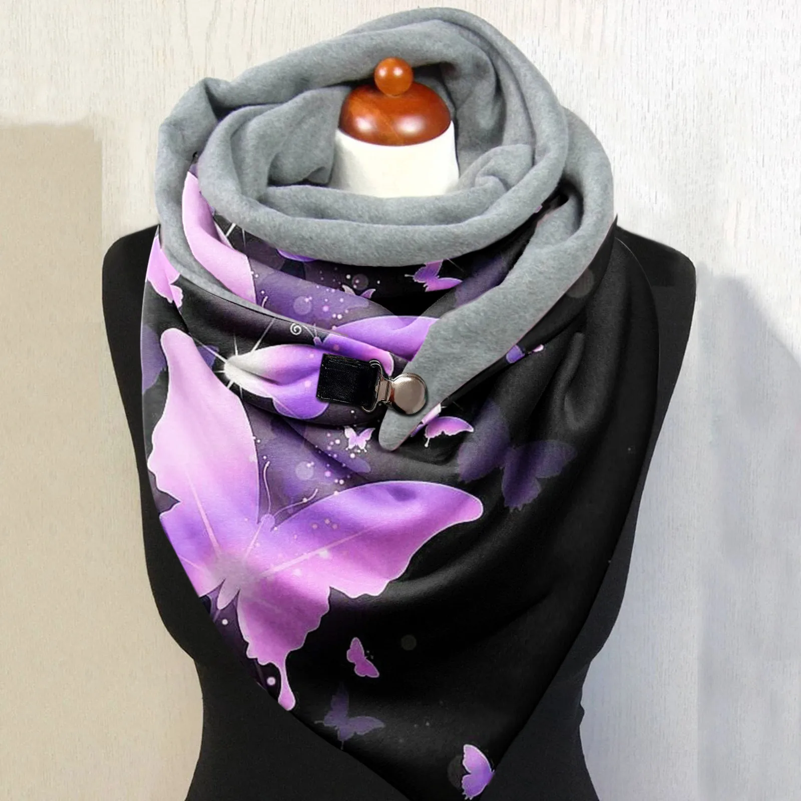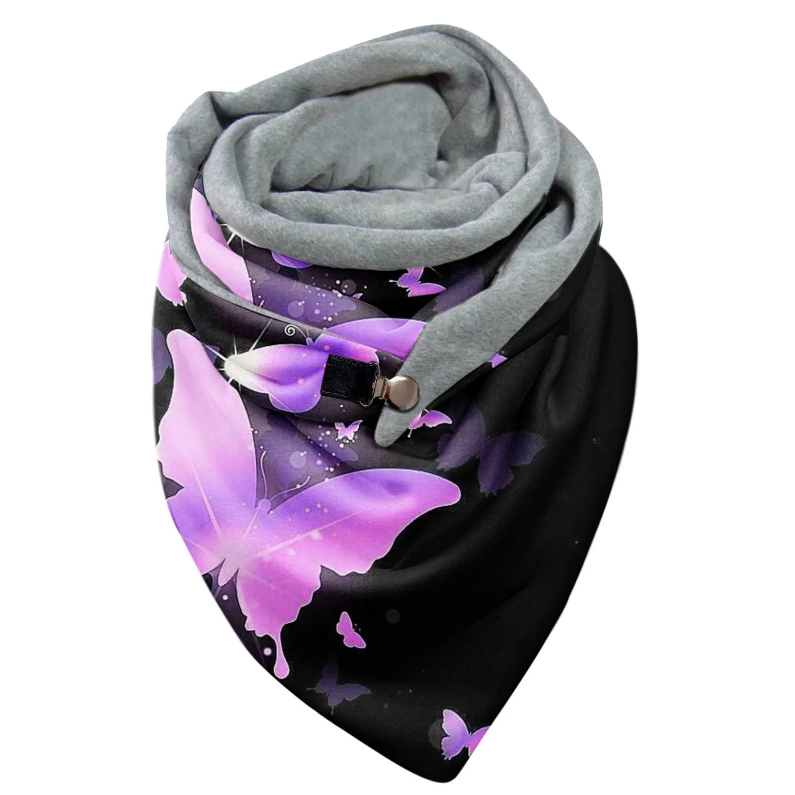 Женский модный мягкий шарф с принтом бабочки на пуговицах, повседневные теплые шарфы, зимний женский шарф 2021, модный шарф с принтом бабочки на пуговицах
