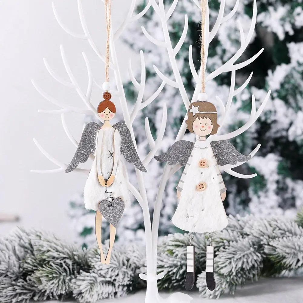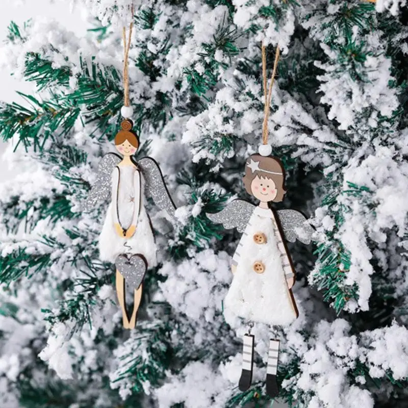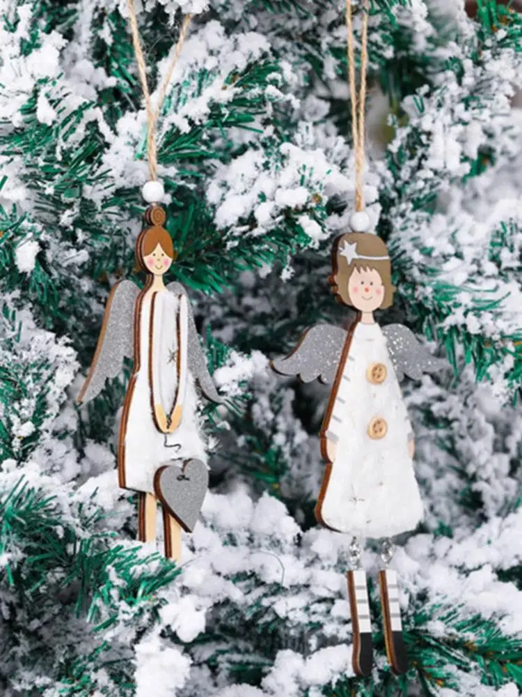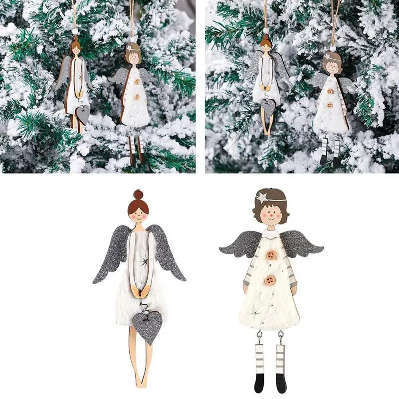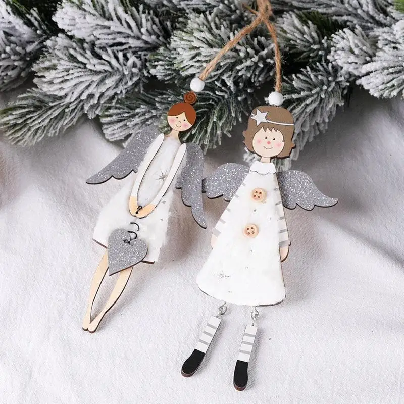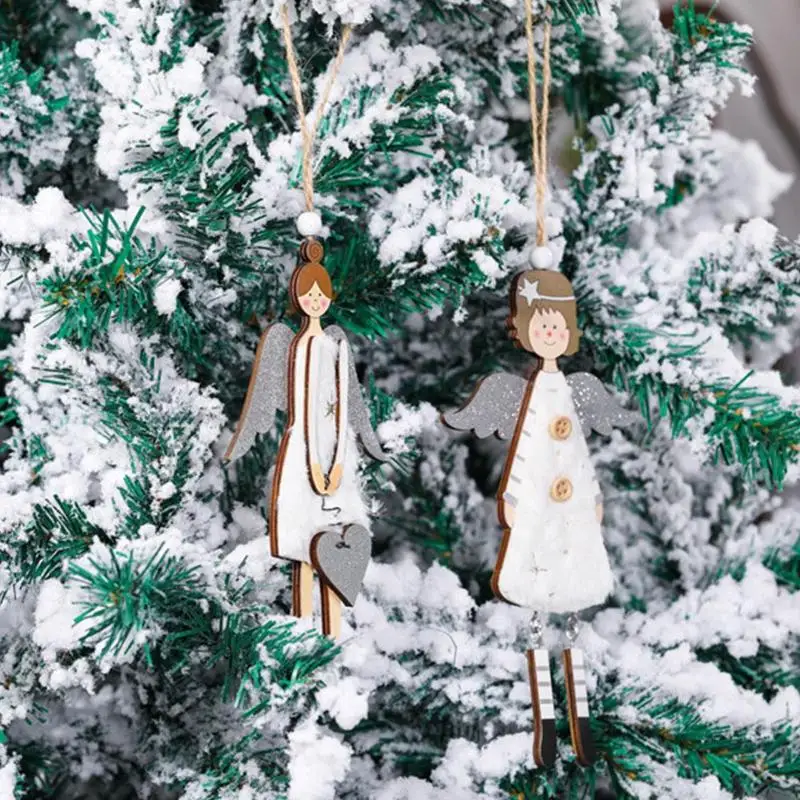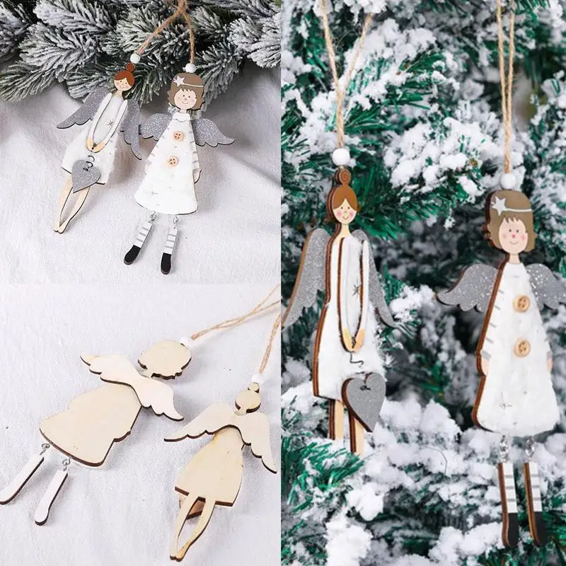 Деревянные Подвески в виде ангелов, украшения для рождественской ел...